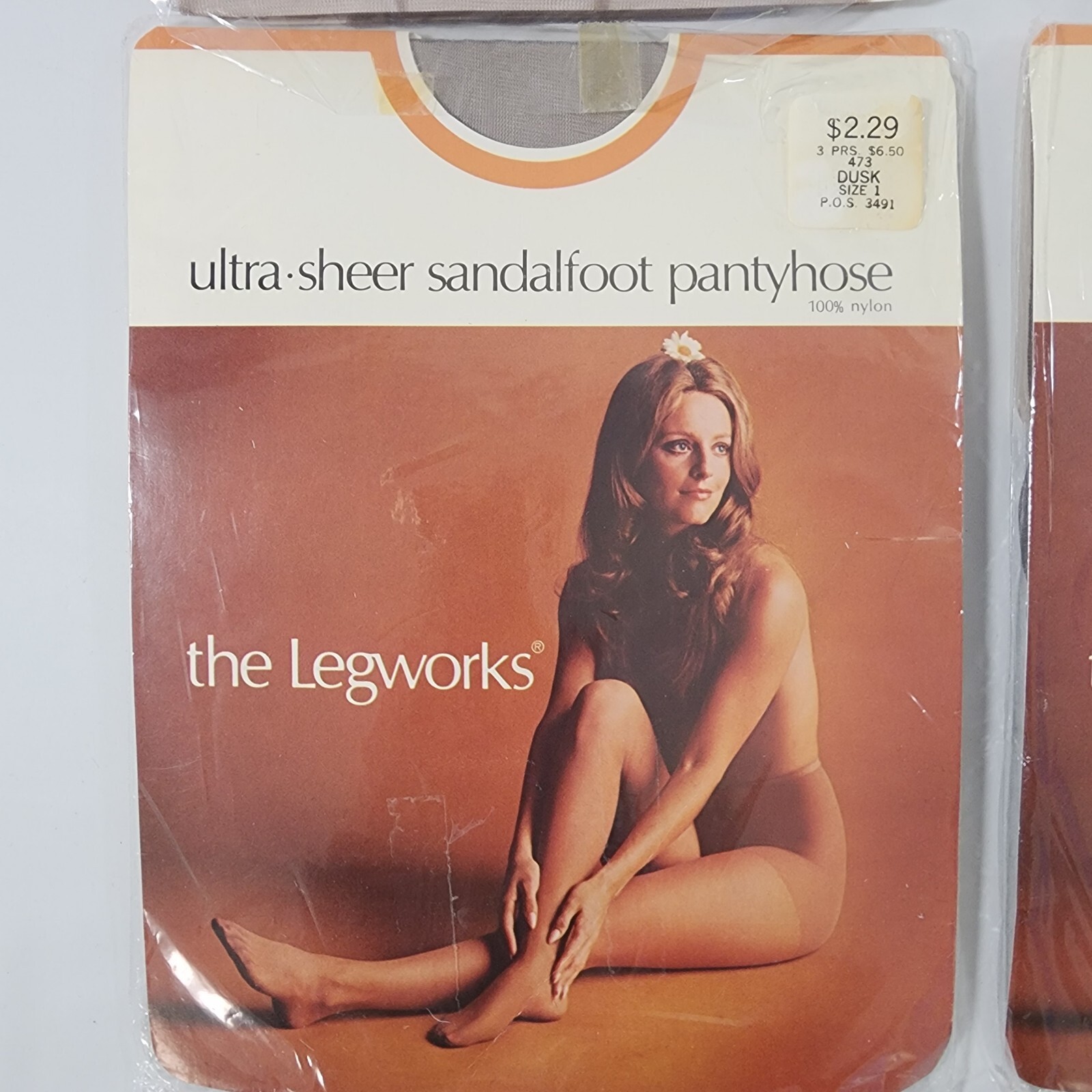 Vtg The Legworks Ultra Sheer Sandalfoot Pantyhose Sz 1 DUSK STANZA Lot of 4