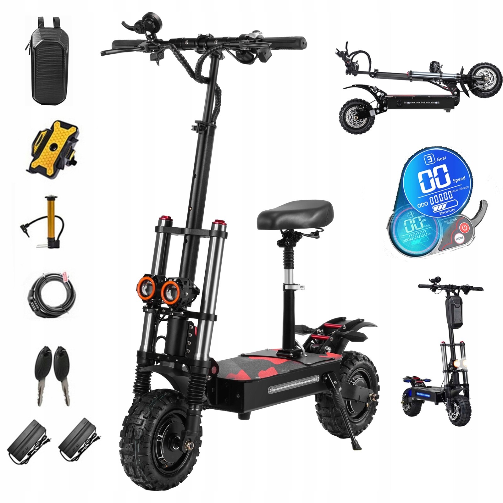 как выглядит 6000W BOYUEDA S3-11 Electric Scooter 60V38AH 11" OffRoad E-Scooter 120KM US 2026 фото