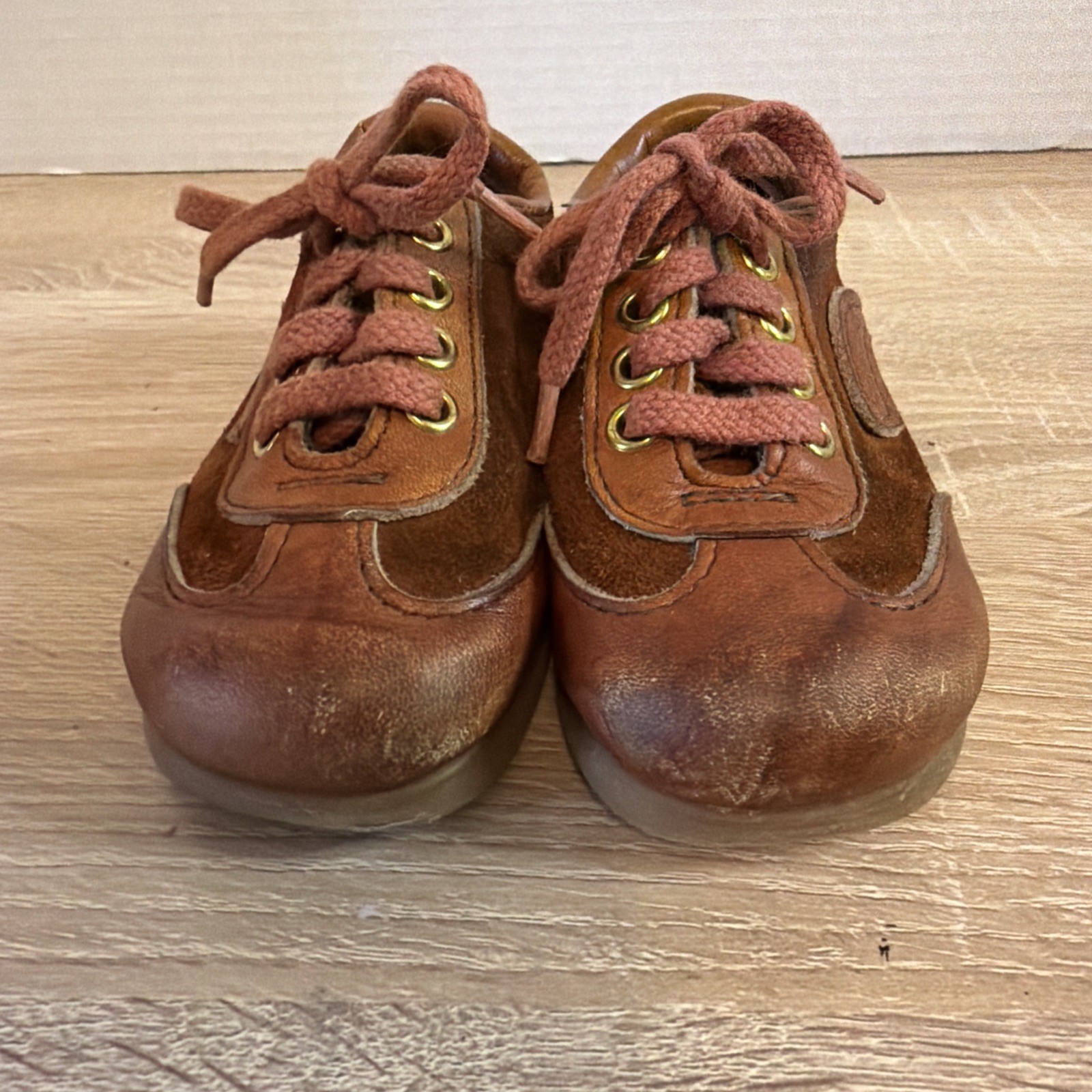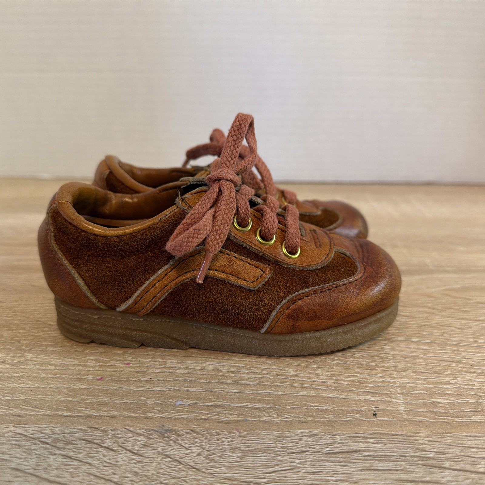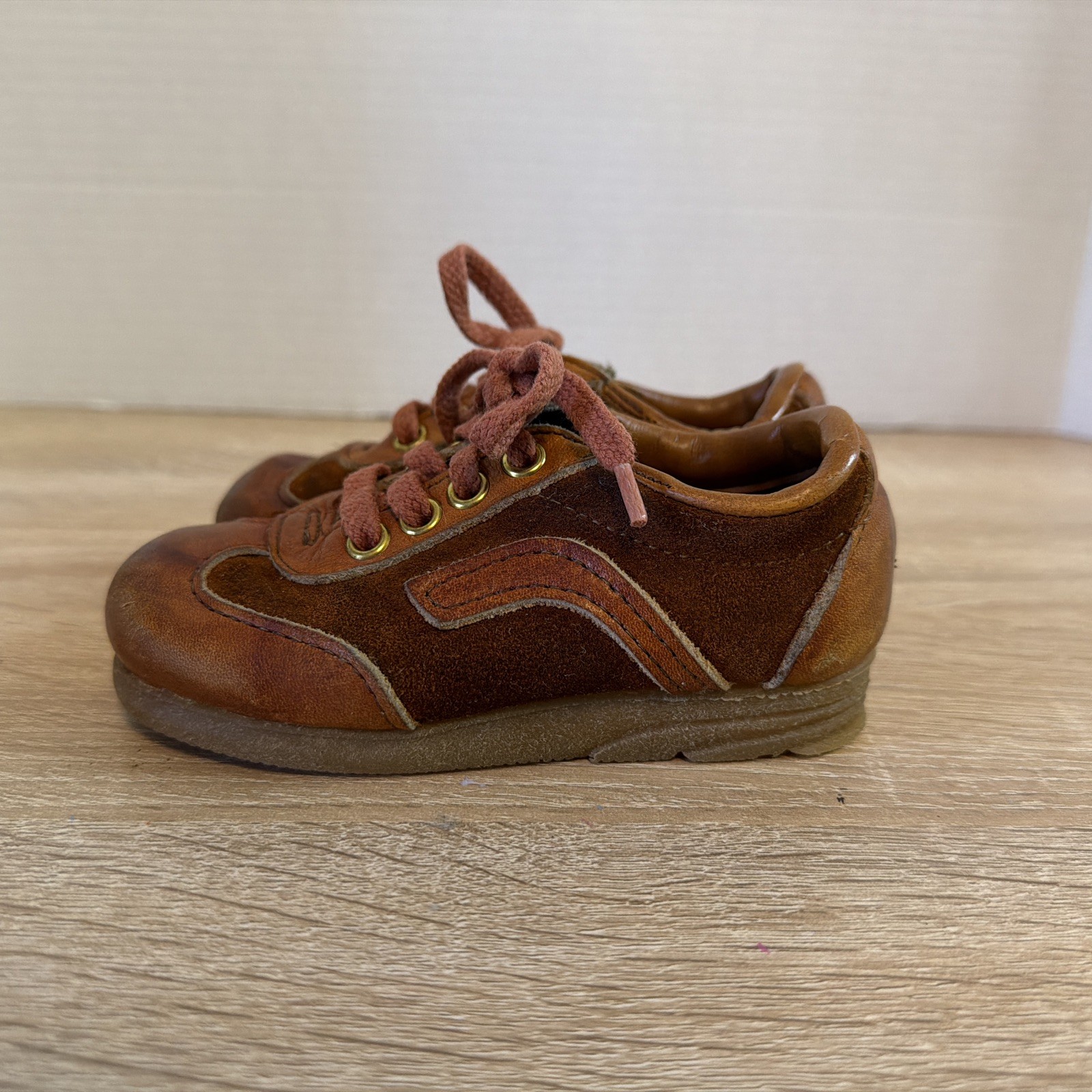 Vintage Kinney Kids Baby Shoes Brown Leather Suede Lace Up Size 6.5 40684