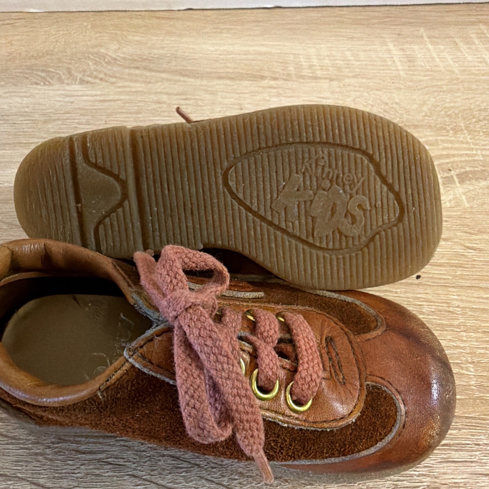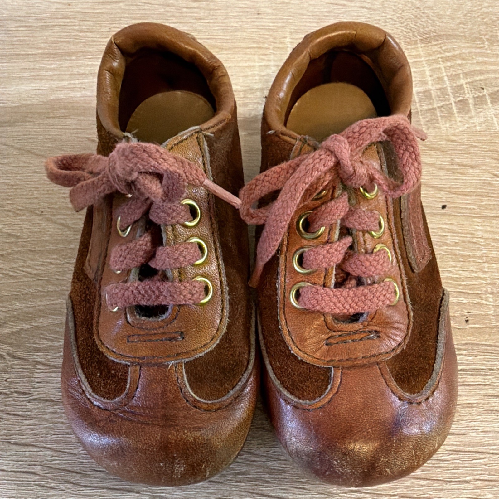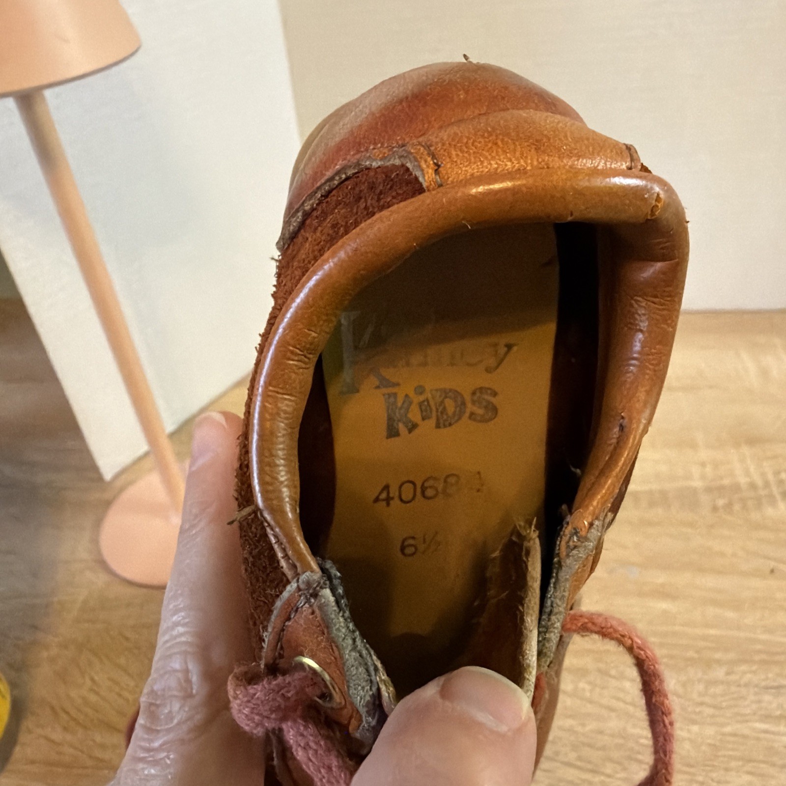 как выглядит Vintage Kinney Kids Baby Shoes Brown Leather Suede Lace Up Size 6.5 40684 фото
