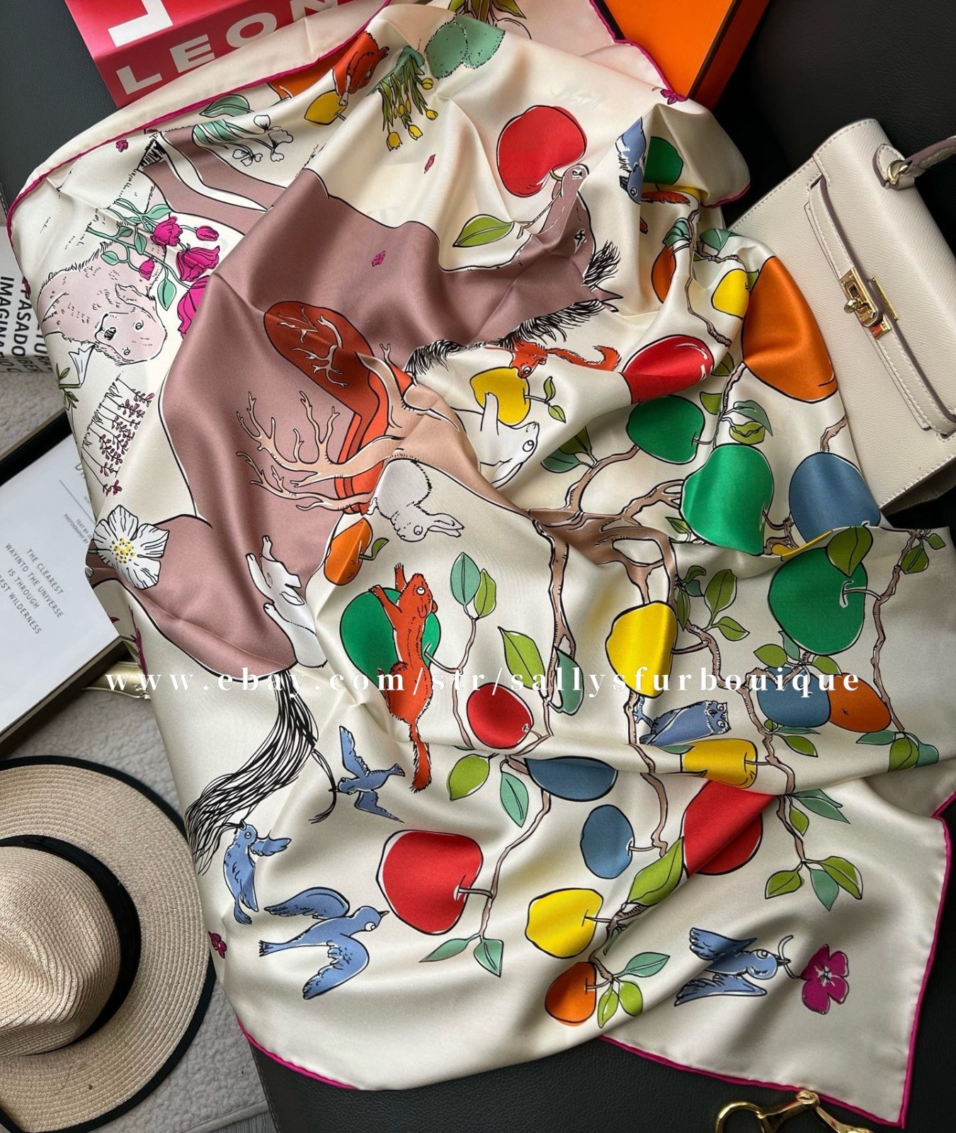 2026 Sallys Boutique 18 Momme Twill Silk Wrap Scarf Horse Tree Print Shawl 35