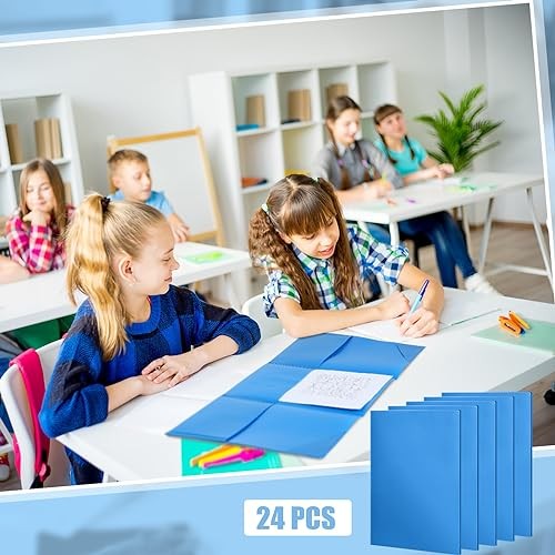 Pcs Tri Fold 3 Pocket Folder Plastic Folders with Pockets for Work 24 Blue
