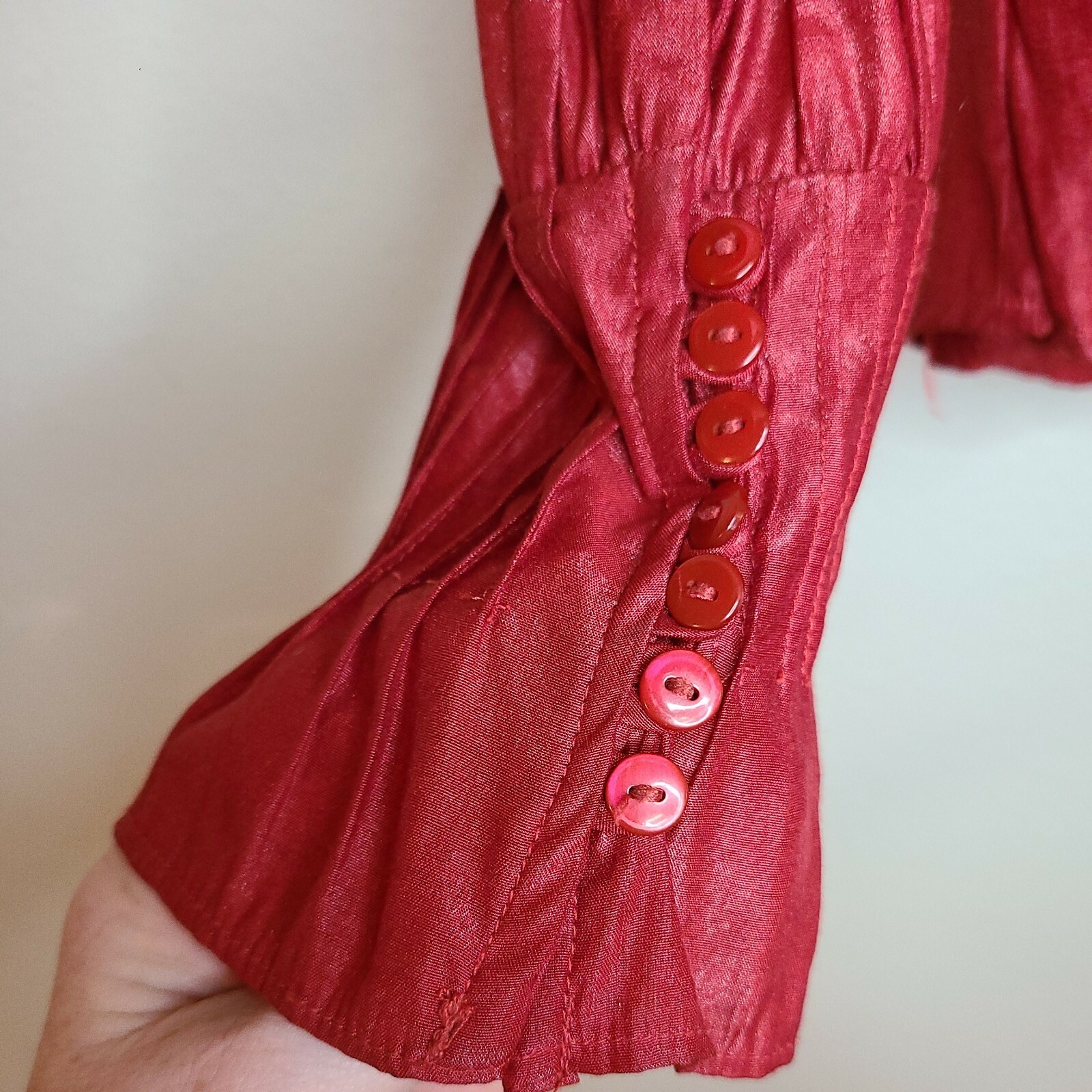 как выглядит VTG L Blouse Nordstrom For Corset Voice CHERRY red Silk Shirt Corset COSTUME фото