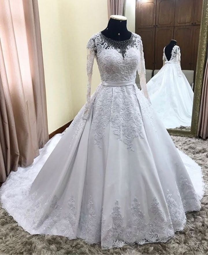 Gorgeous Wedding Dresses Long Sleeves Backless Lace Appliques Bridal Gowns