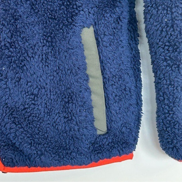 613. Eddie Bauer boys Fleece Jacket - Navy Olive with orange Accents size xs
