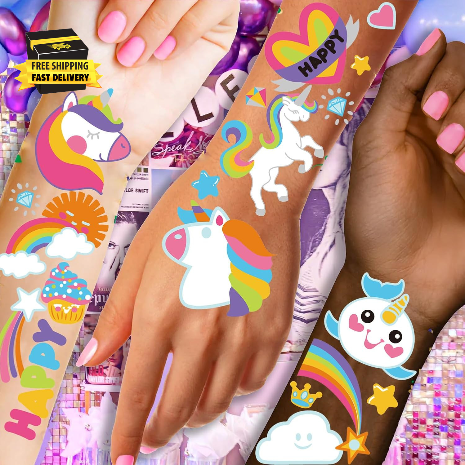118Pcs Unicorn Temporary Tattoo- 4 Sheet Unicorn Temporary Tattoos Fot Birthday