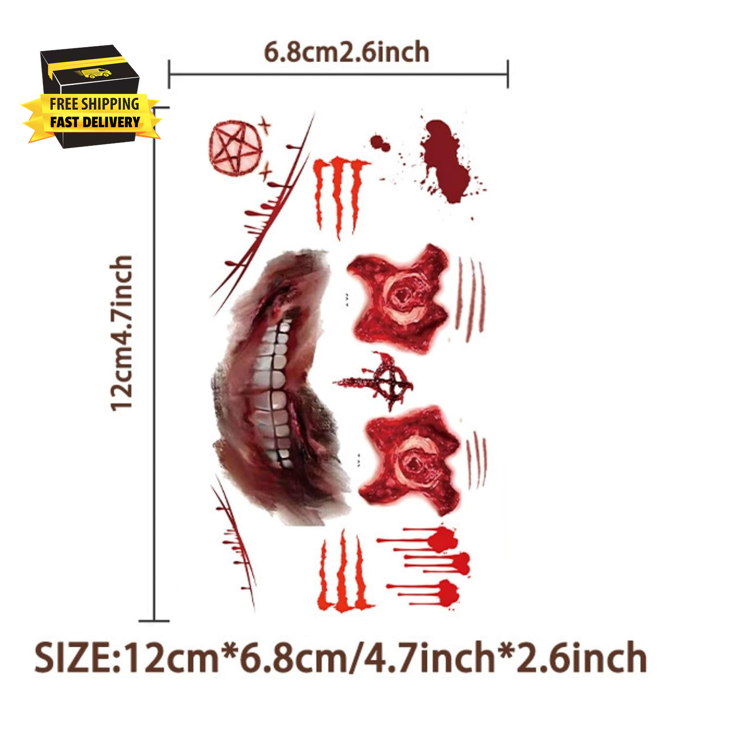 как выглядит 10 Sheets Halloween Scars Temporary Tattoos for Kids, Horror Realistic Scary Blo фото