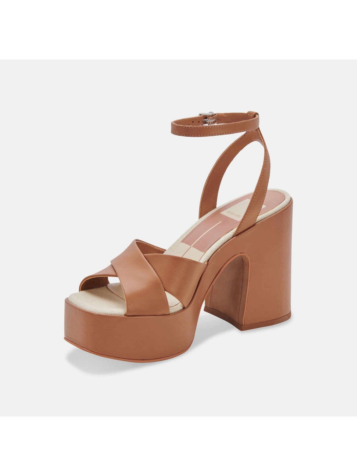 как выглядит DOLCE VITA Womens Beige 2" Platform Tildah Leather Heeled Gladiator Sandal 9.5 фото