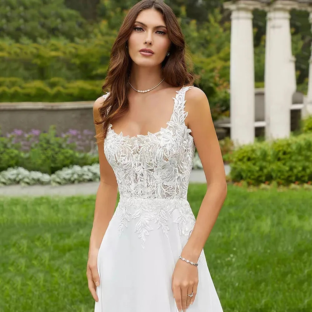 как выглядит Elegant Chiffon Wedding Dresses Lace Appliques Bridal Gowns Backless Buttons New фото