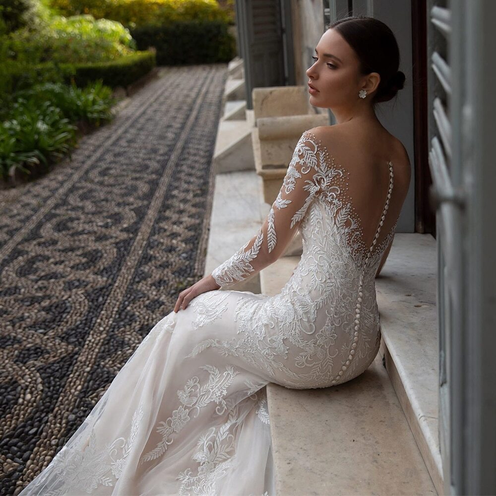 Elegant Scoop Neck Wedding Dresses Lace Applique Detachable Train Bridal Gowns