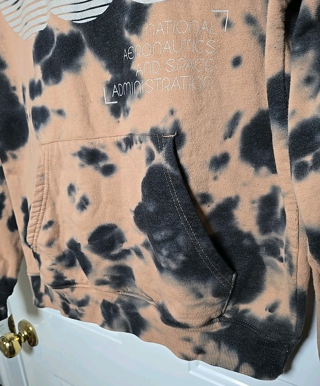 как выглядит NASA Space Tan With Black Ink Spots Hooded Sweatshirt Unisex Size Small фото