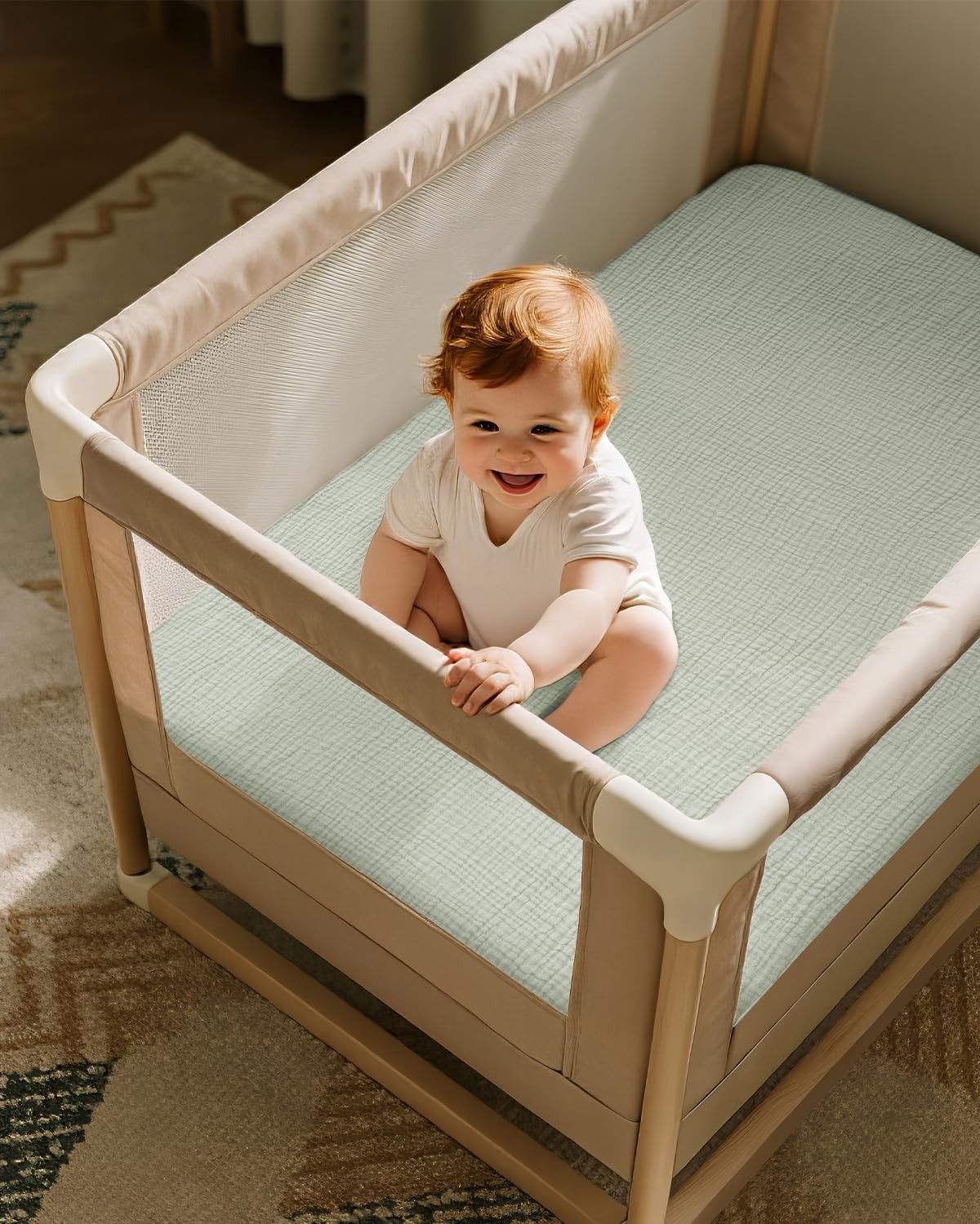 Muslin Pack and Play Sheets Fitted, 100 Cotton Mini Crib Sheets 2 Pack for P...