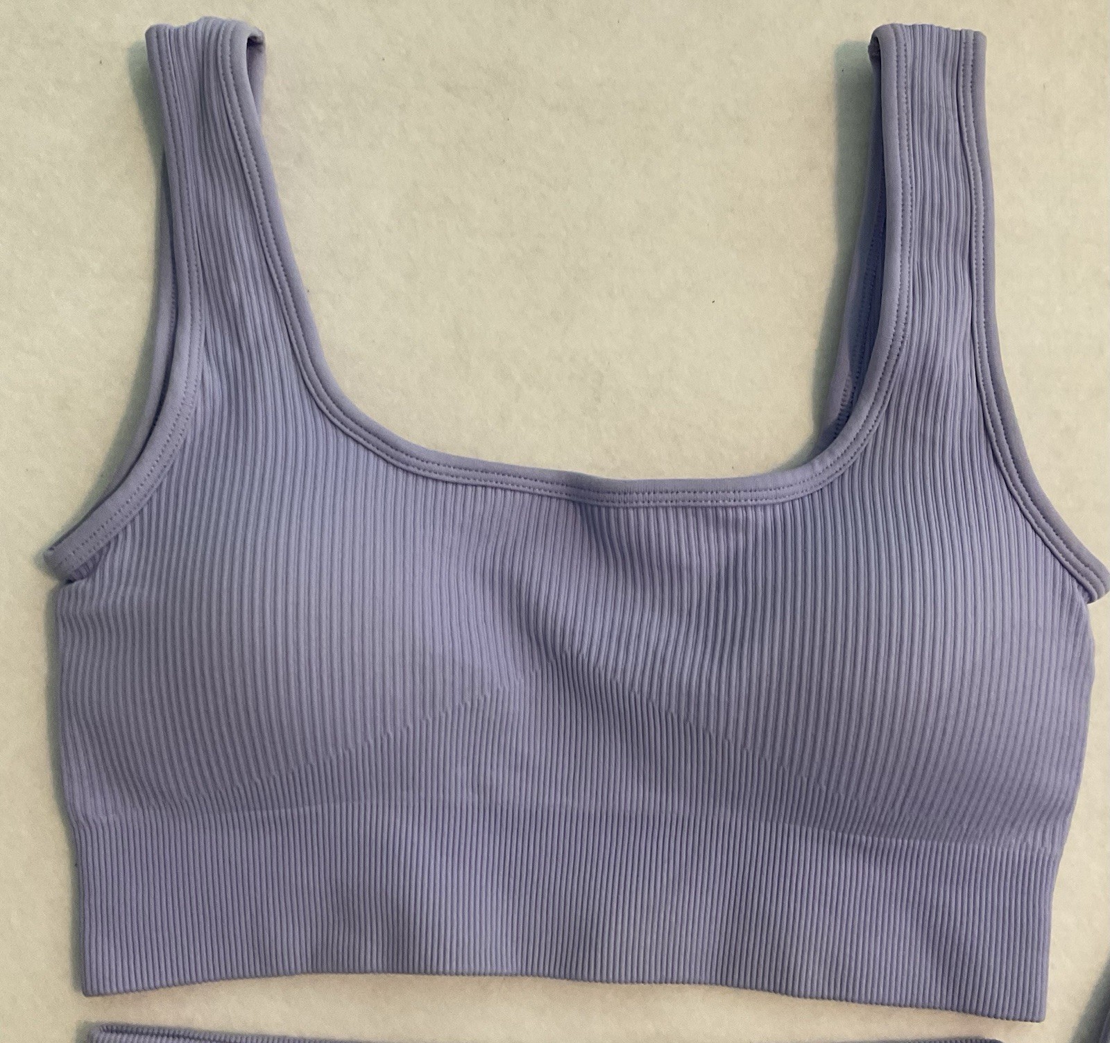 как выглядит Yoga Workout 3 Piece Set Seamless Ribbed 2 Sports Bras Shorts Purple Small фото