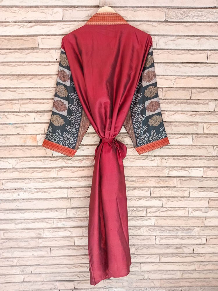 Pure Silk Kimono Long Robe Gown Woman Silk Robe Kimono Night Maroon KMO4524