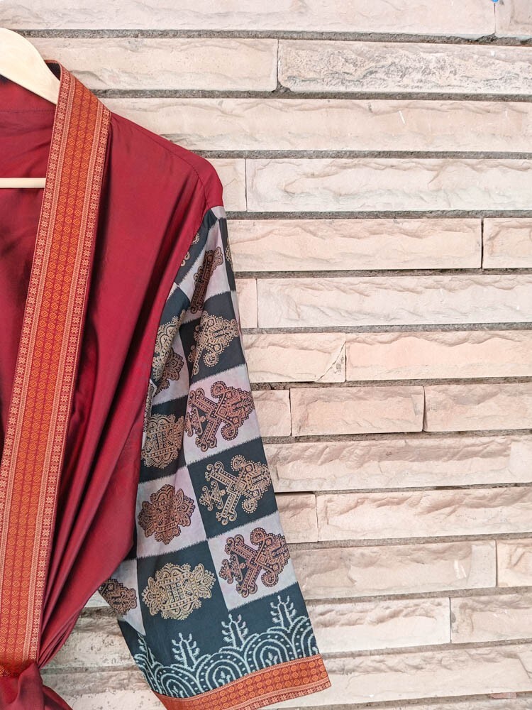 как выглядит Pure Silk Kimono Long Robe Gown Woman Silk Robe Kimono Night Maroon KMO4524 фото