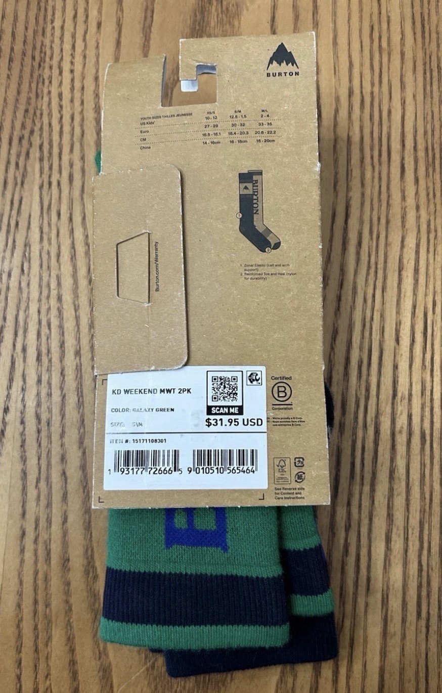 BURTON KIDS MIDWEIGHT WEEKEND SKI SOCKS SMALL/MEDIUM - 2 PACK