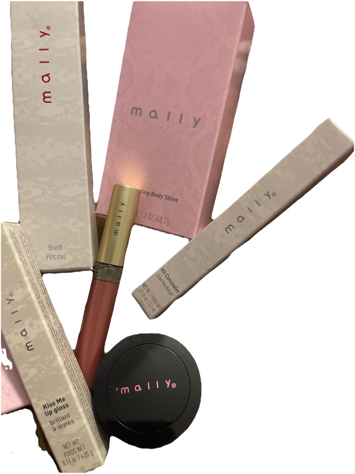 9 pc MALLY Makeup ,shine, Glow, Kiss, Concealer, Primer, Blush, Foundation, Brsh