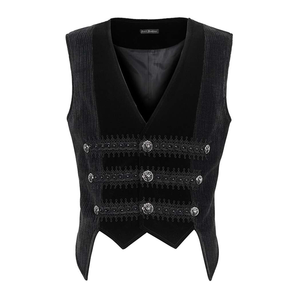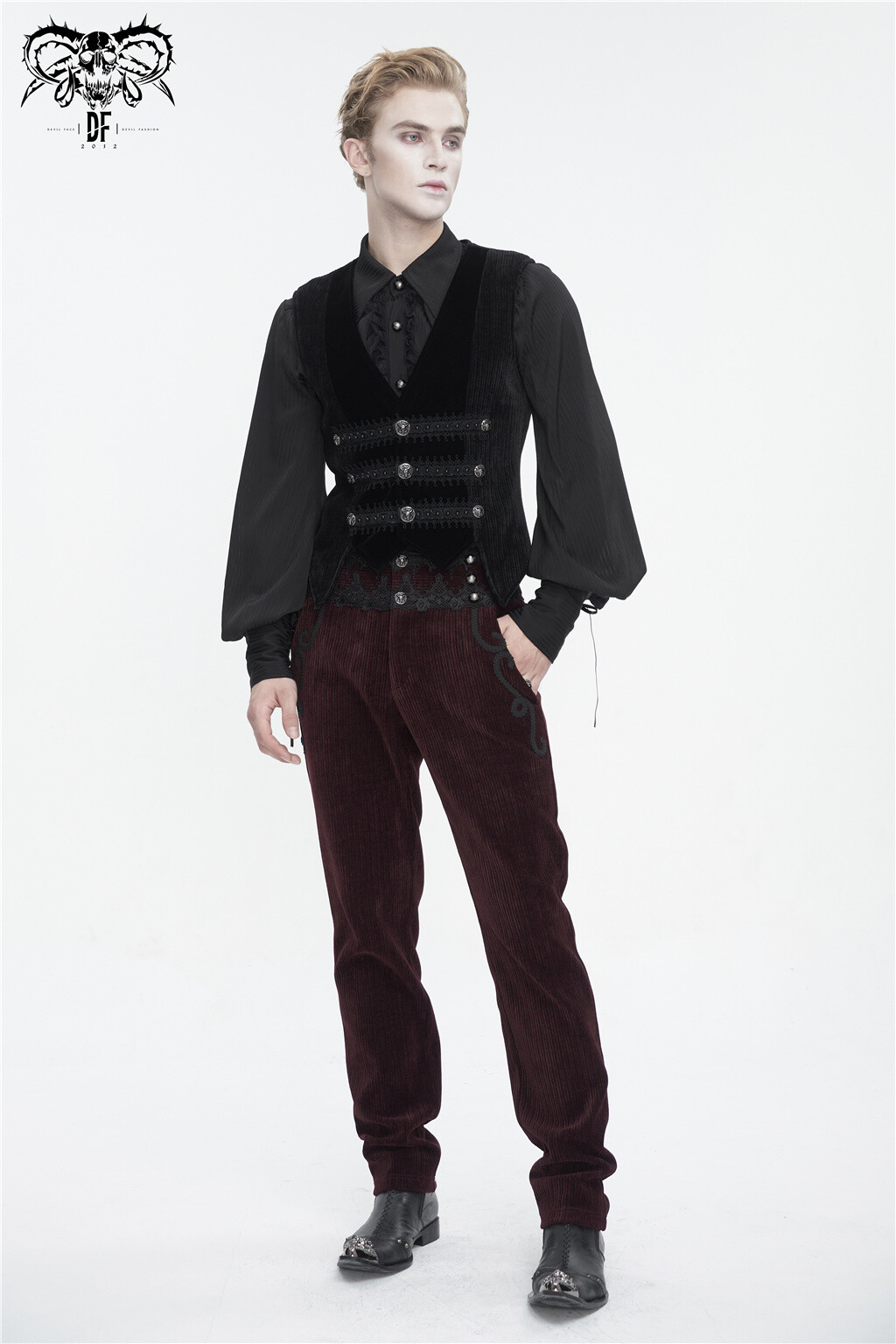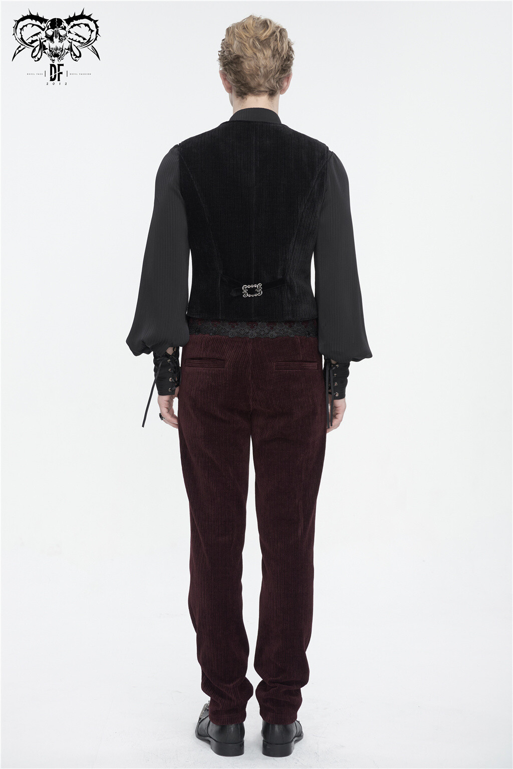 Devil Fashion Men Wine Red Victorian Goth Vest Velvet Button Up Party Waistcoat