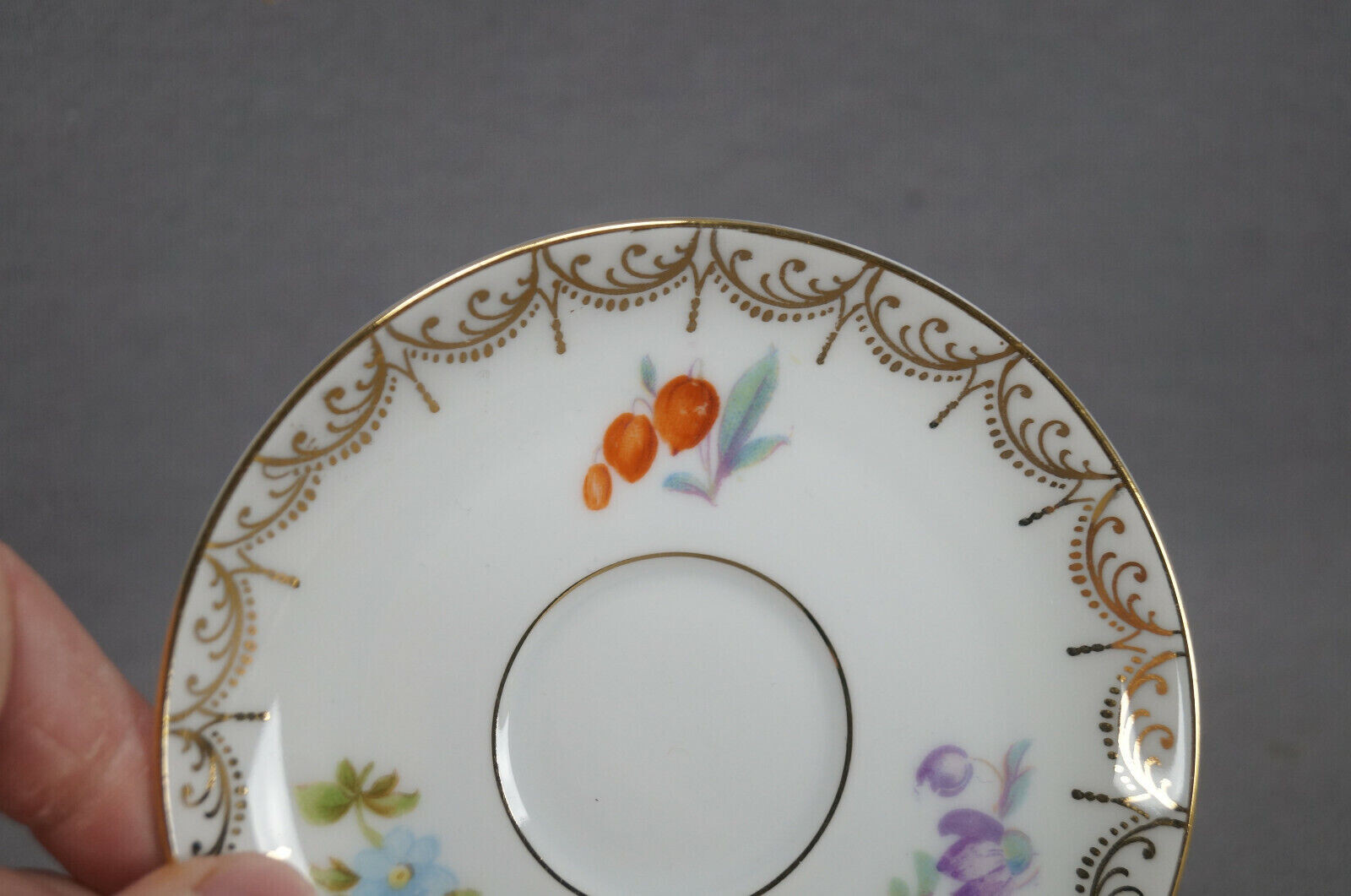 Set of 4 Tirschenreuth Old Meissen Pattern Floral Gold Demitasse Cups Saucers