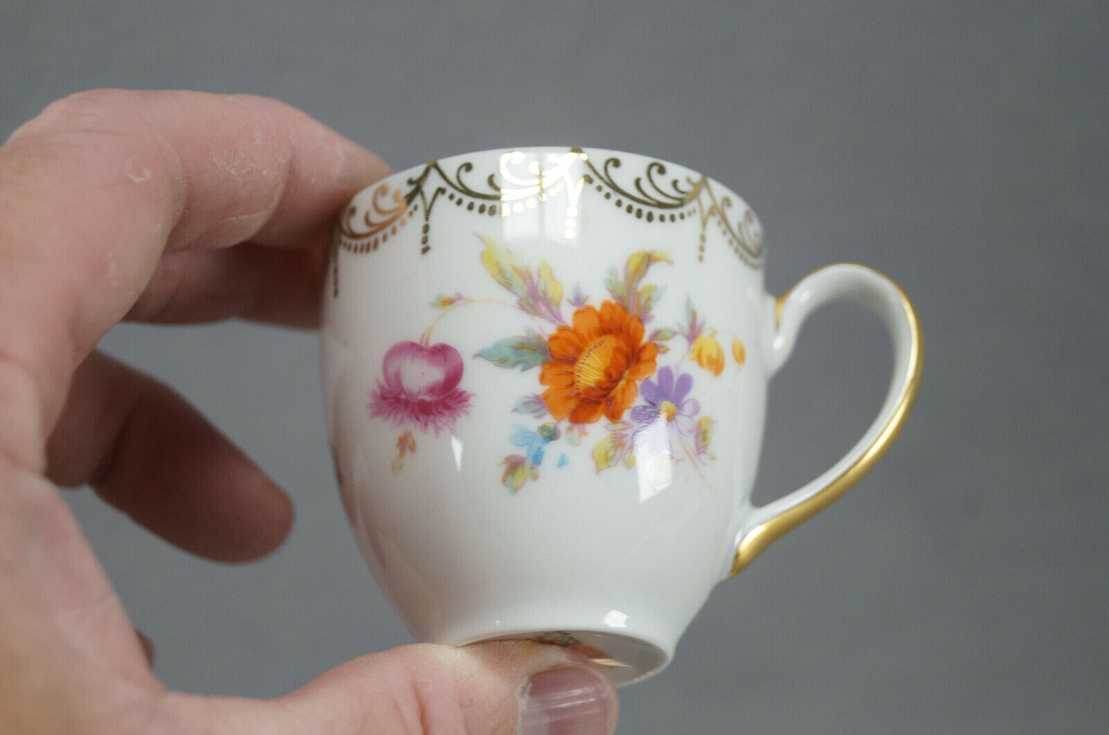 как выглядит Set of 4 Tirschenreuth Old Meissen Pattern Floral Gold Demitasse Cups Saucers фото