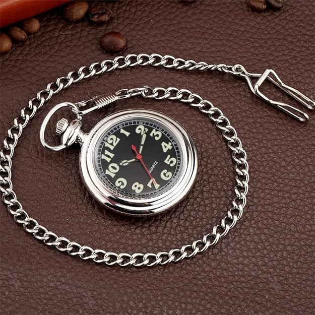 Quartz Pocket Watch Arabic Numeral Sliver Shiny Pocket Watches with Chain-Sliver