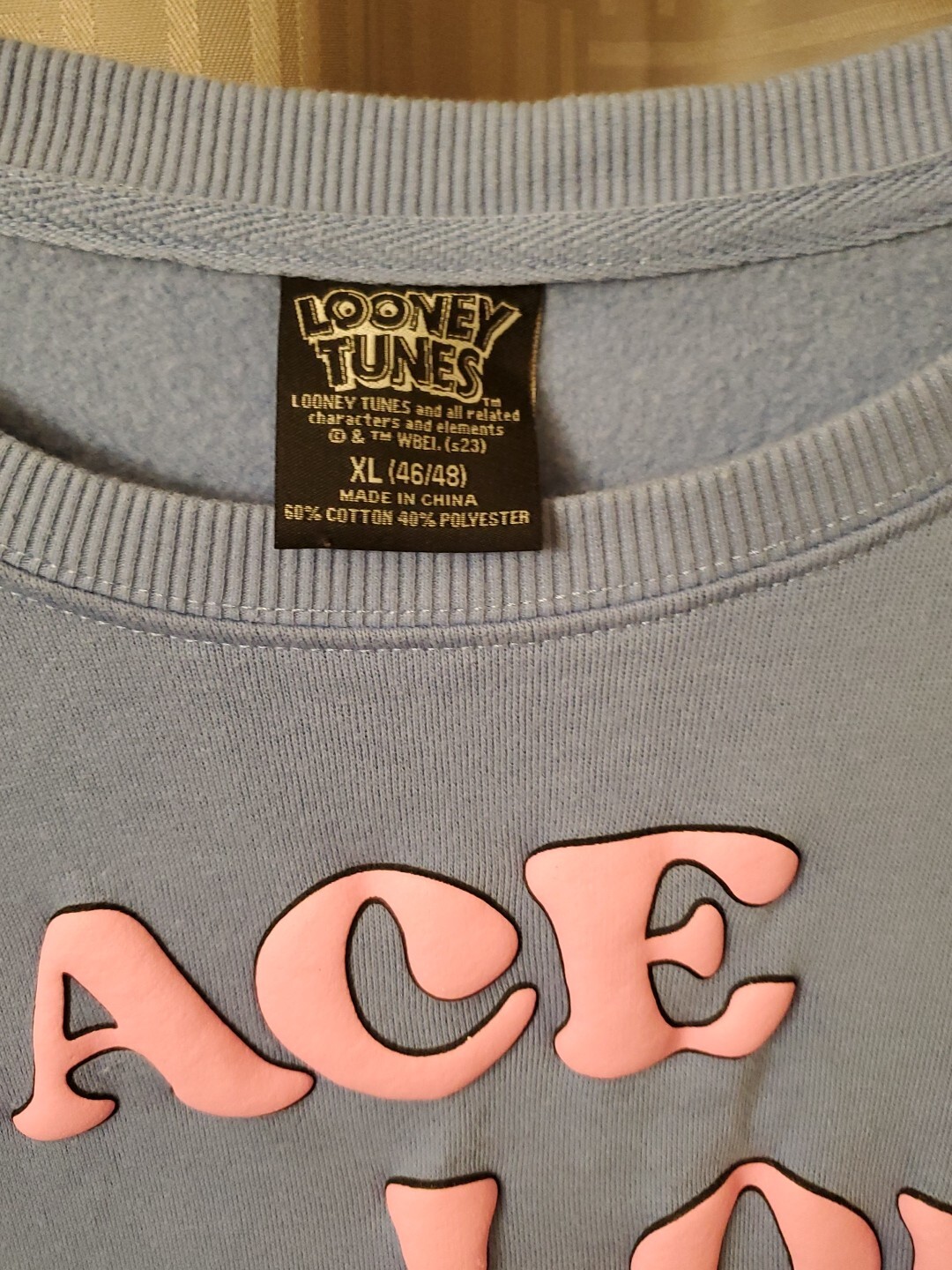как выглядит LOONEY TUNES BUGS BUNNY PEACE LOVE UNITY PUFF PAINT SWEATSHIRT BLUE XL фото