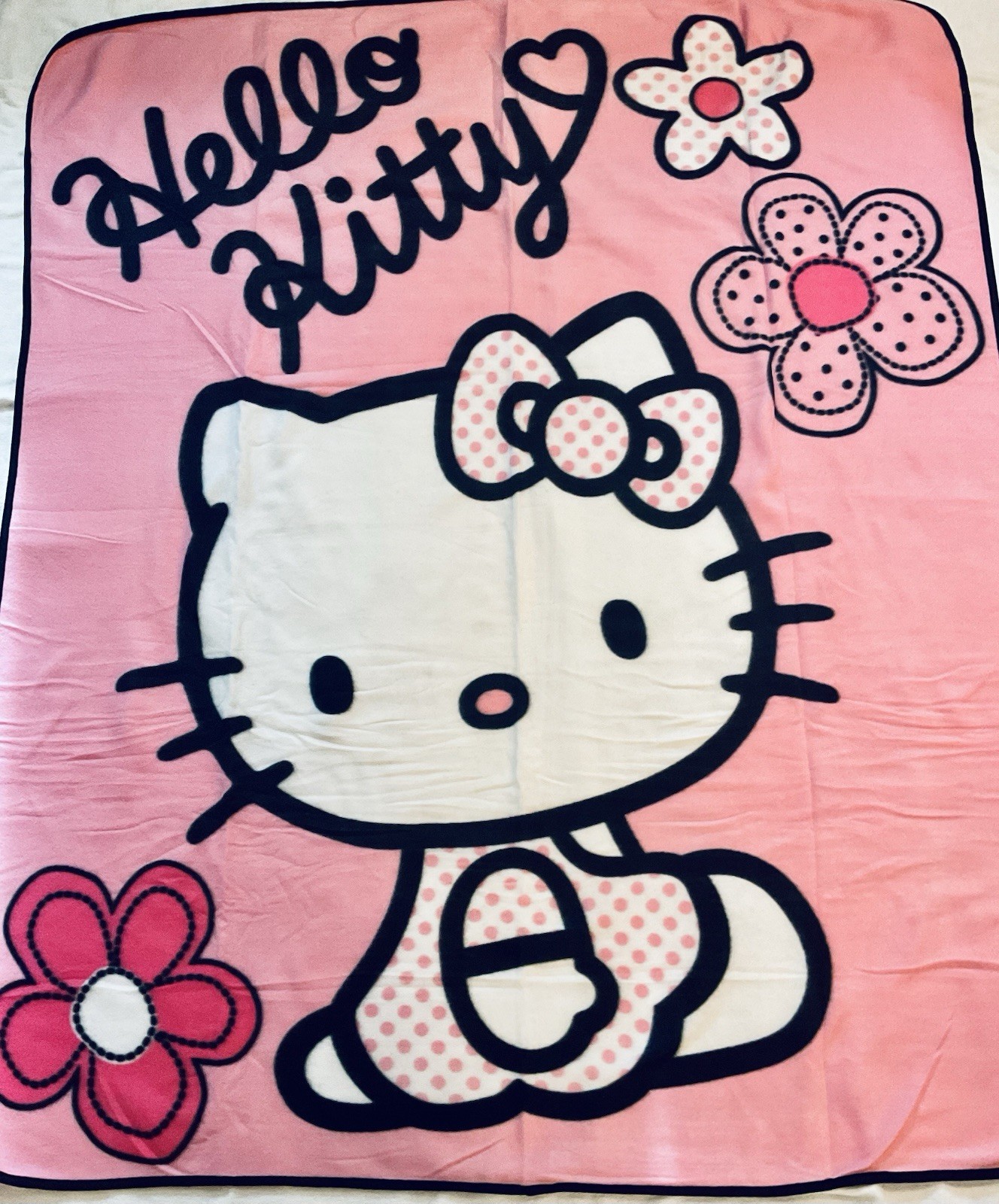 HELLO KITTY PINK POLKA DOT BOW SOFT THROW BLANKET 50 X 60 SANRIO