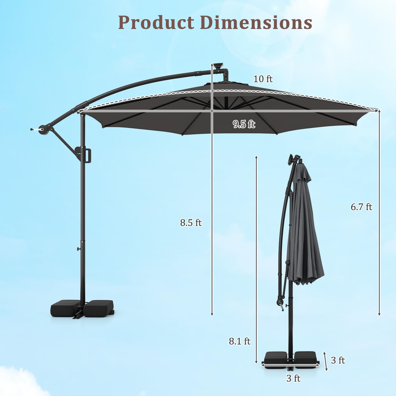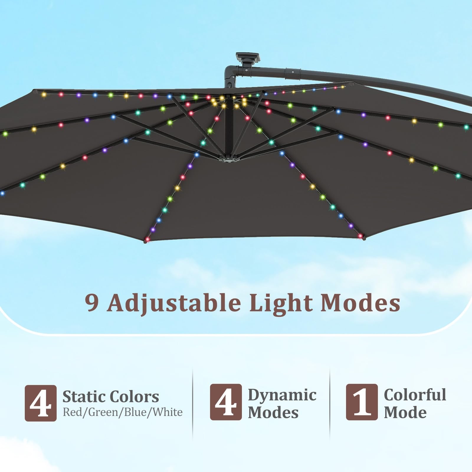 10 FT Offset Hanging Umbrella with Multi-Colored Flowing LED Lights Gray