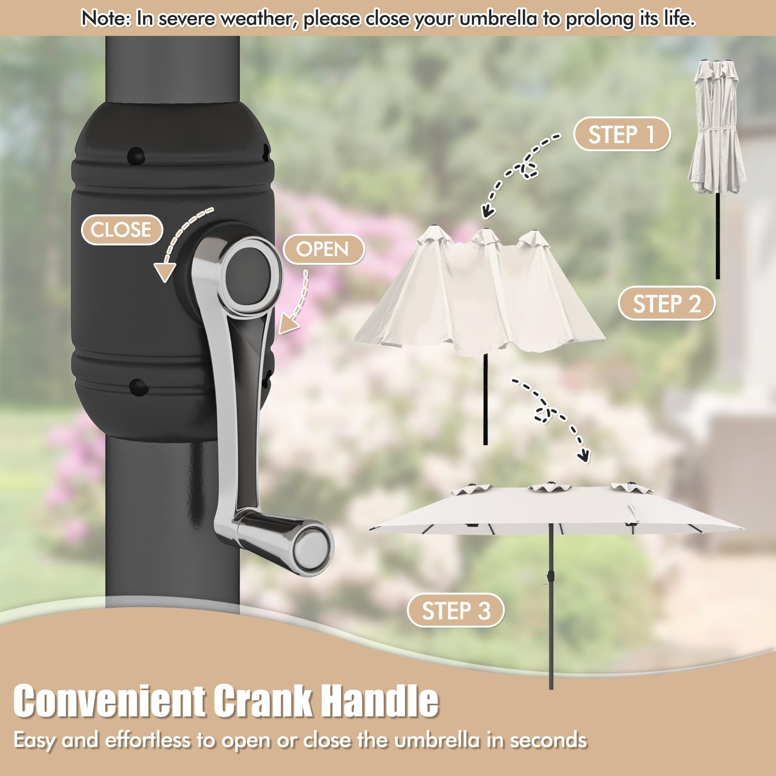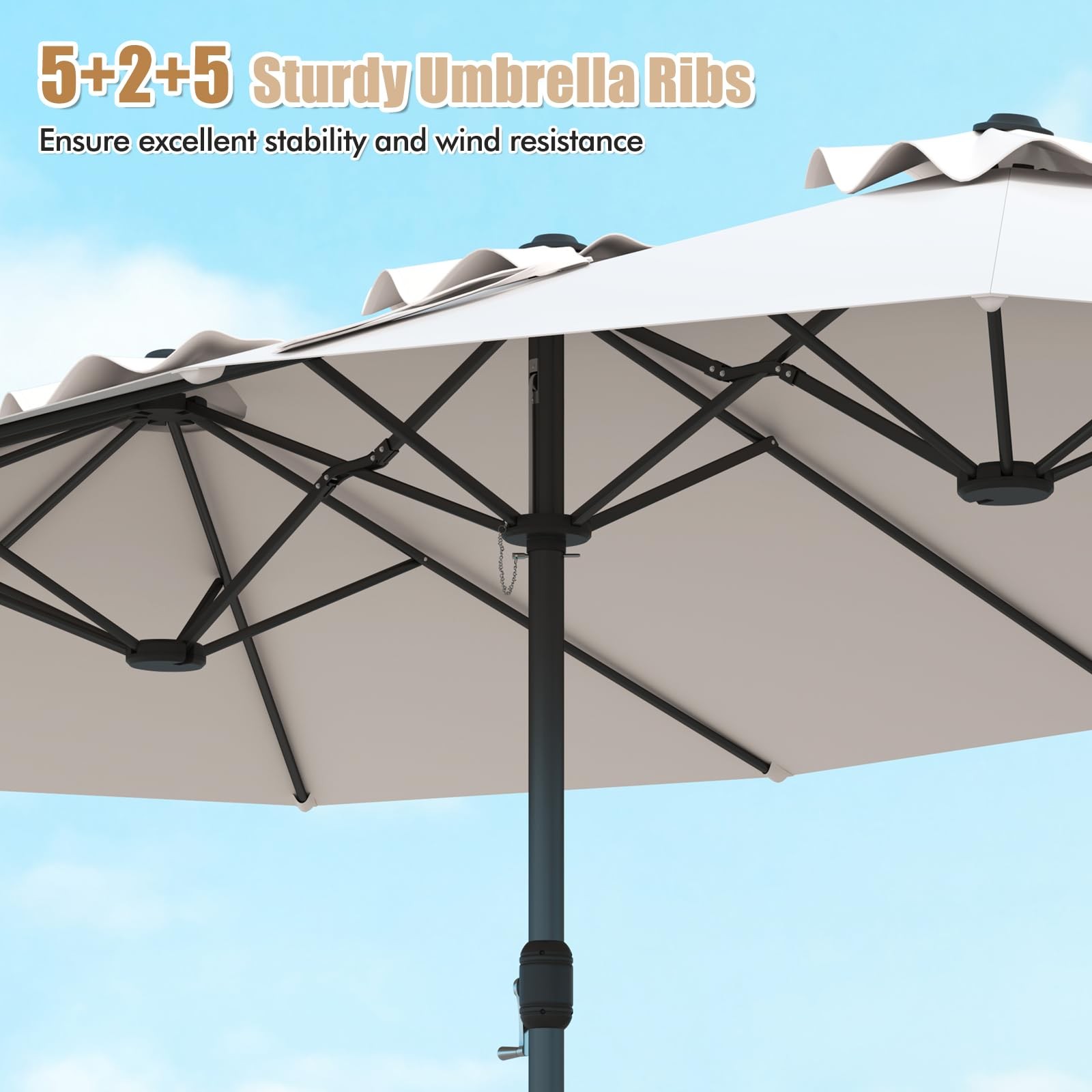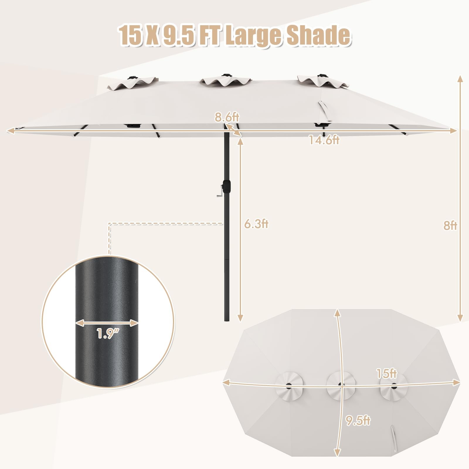 15 FT Double-Sided Large Patio Umbrella, Outdoor Table Market Umbrella Beige