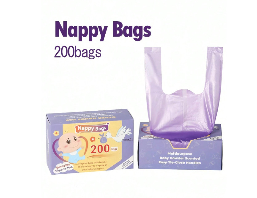 Disposable Diaper Sacks,Baby Powder Scent,Easy-To-Tie, Pet Waste Bags, 200 count