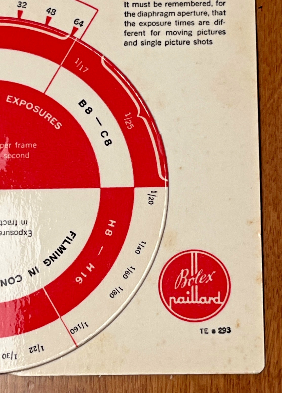 Vintage Bolex Paillard Pocket Exposure Table Times Wheel for Daylight
