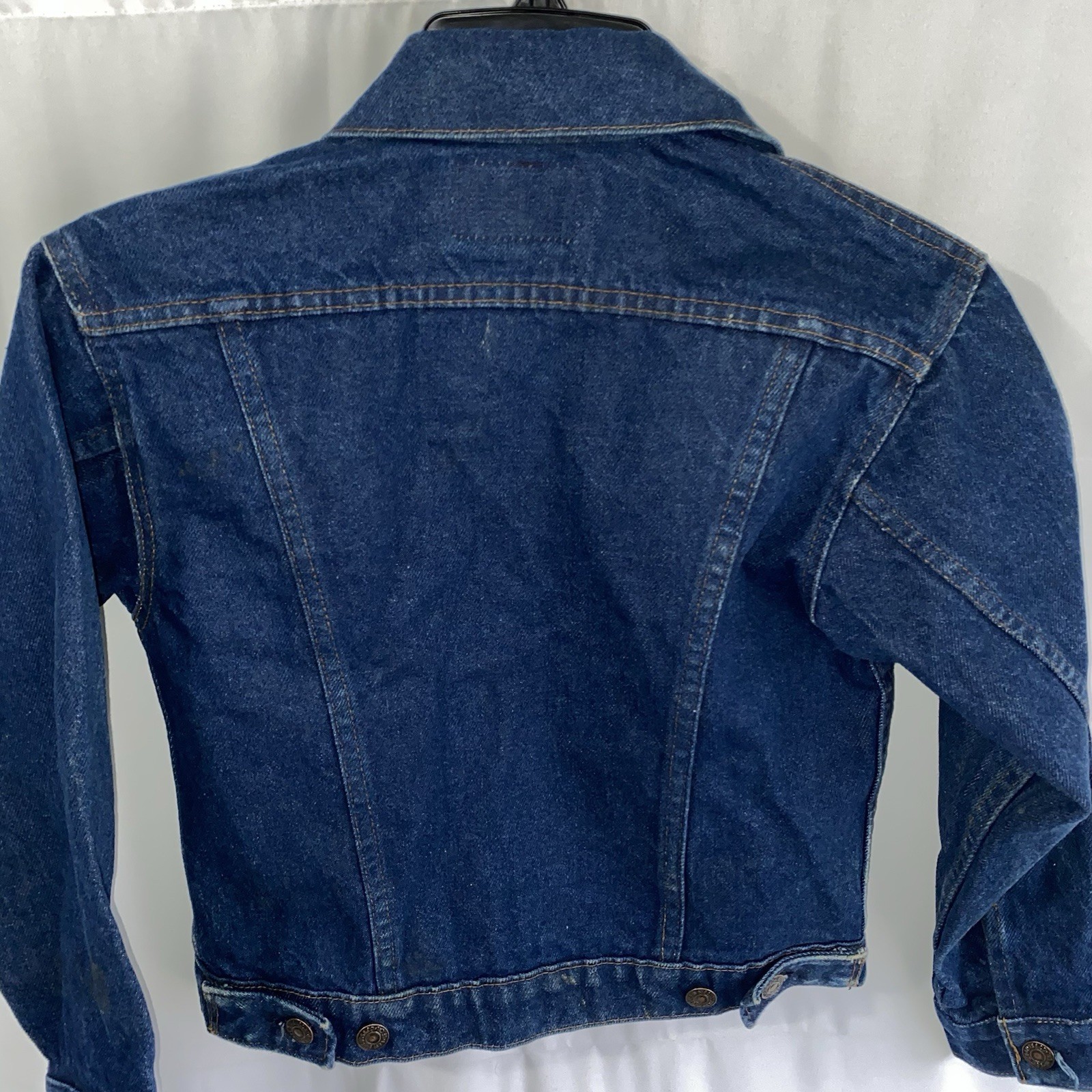 Vintage Levis 37406-0215 Blue Cotton Denim Button Trucker Jacket Youth Medium