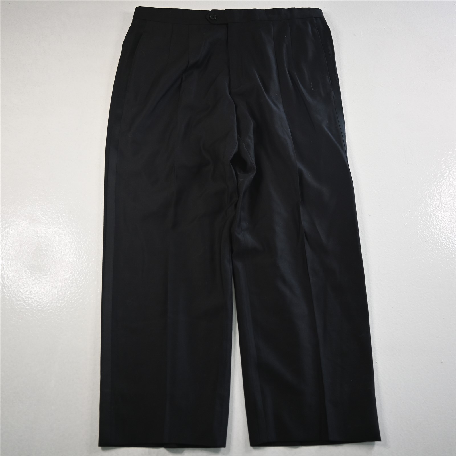 как выглядит Bespoke 34x28 Black 100 Wool Pleated Front Tuxedo Trousers Mens Pants фото