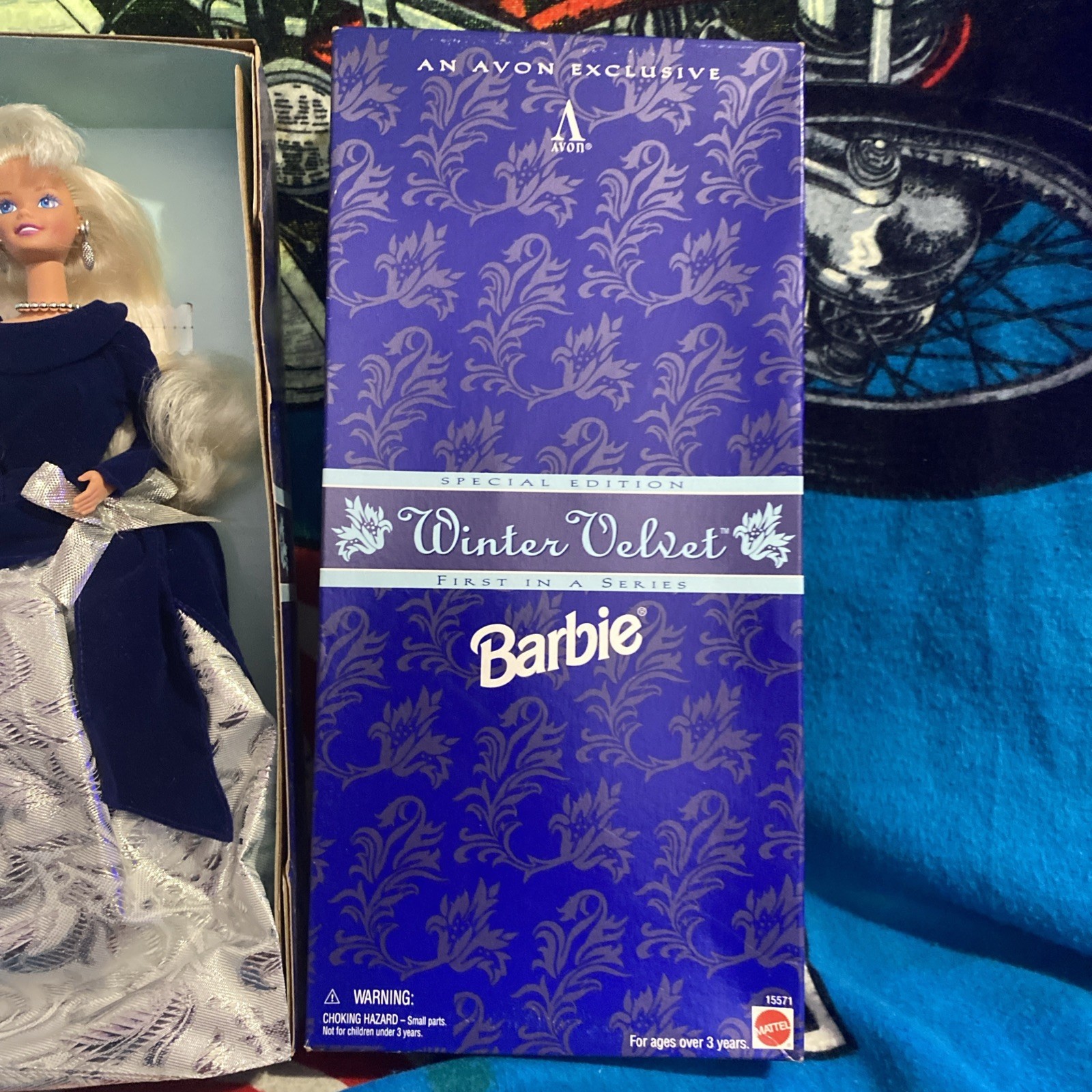 как выглядит VTG 1995 Winter Velvet Barbie Doll Special Edition Avon Mattel Blonde Blue Dress фото