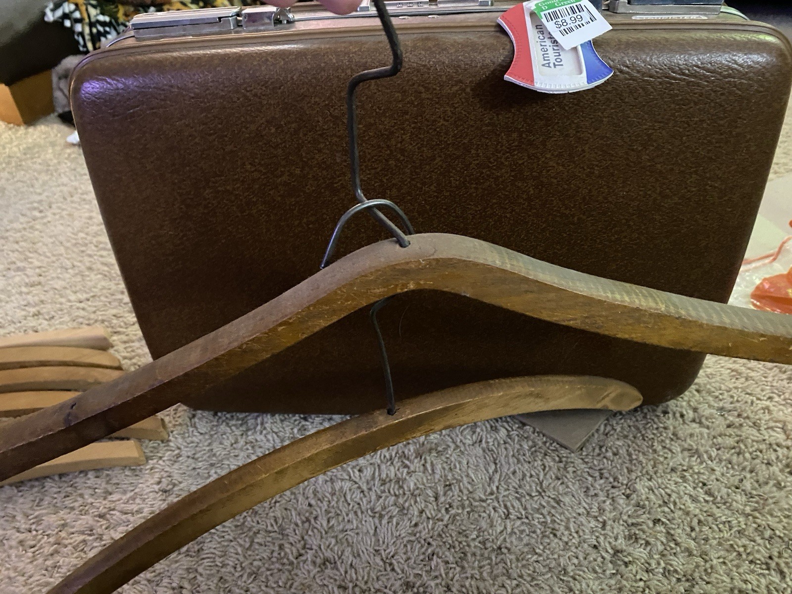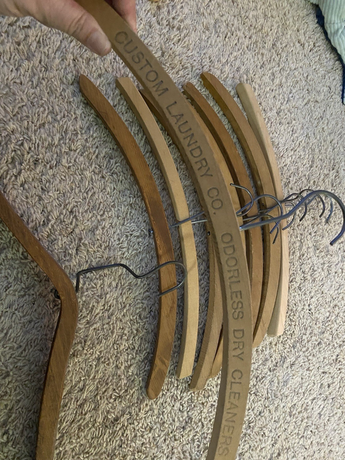 19 Vtg Wooden Clothes Coat Hangers Thin/Thick Curved Wood Wire Hooks MCM 16