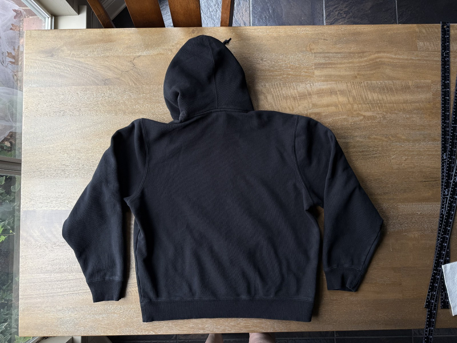 как выглядит Stussy Embroidered Black Sweatshirt Pullover Hoodie Kangaroo Pocket Large фото
