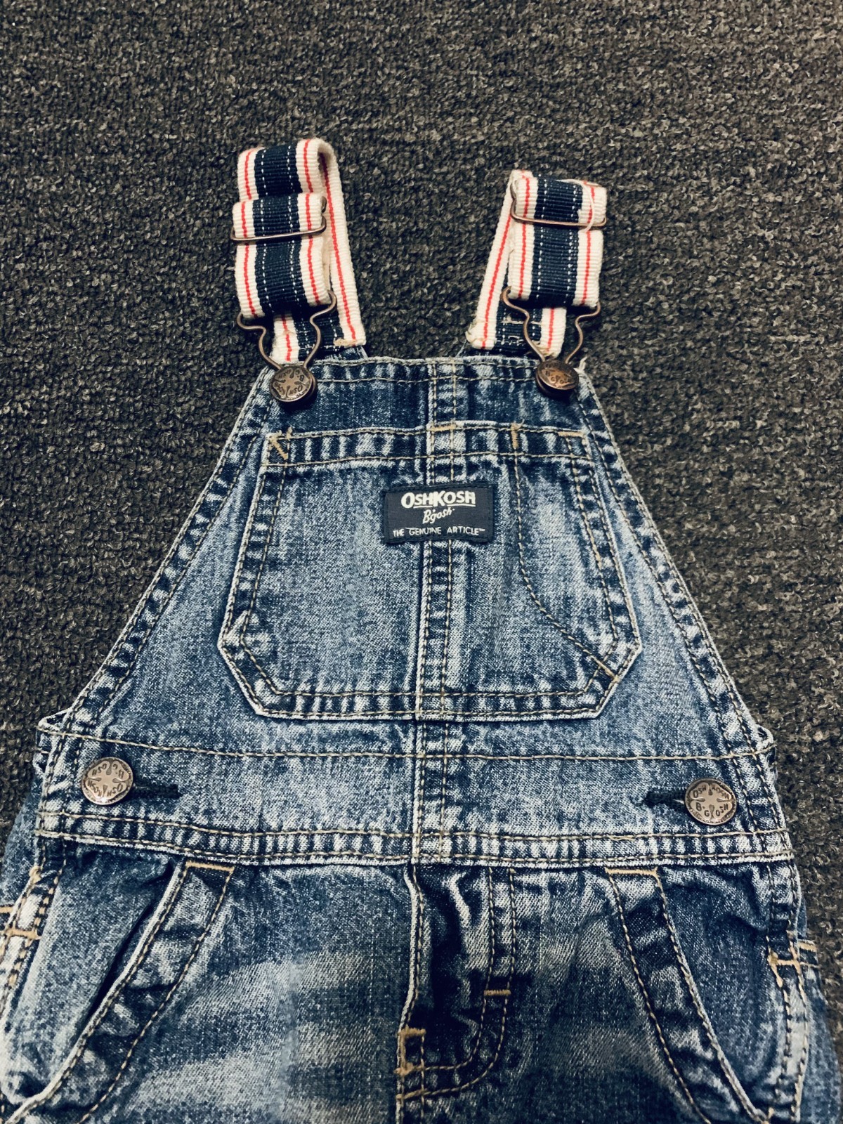 как выглядит OshKosh Denim Overalls Baby 9M 9 Months Vestbak Snap Open Legs B