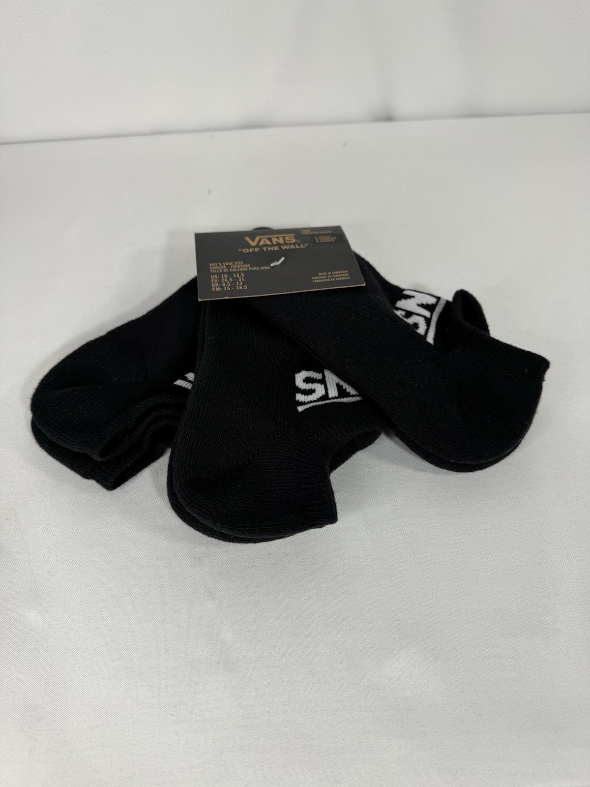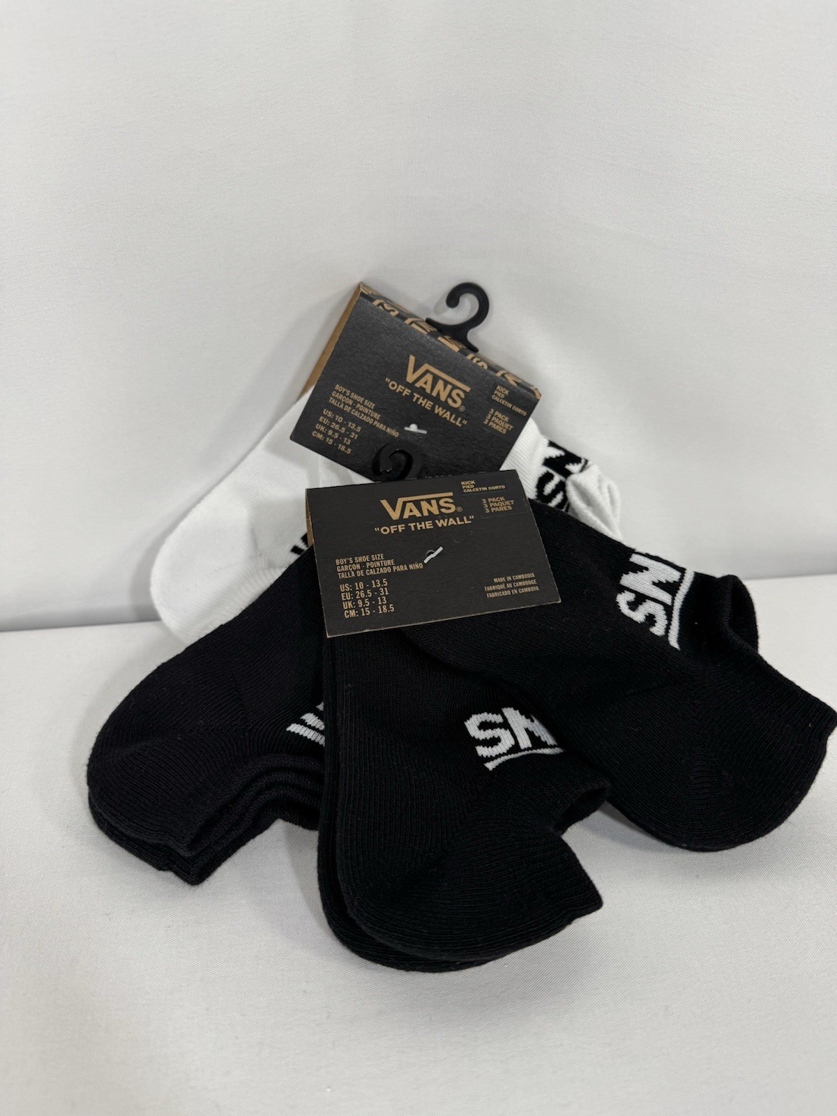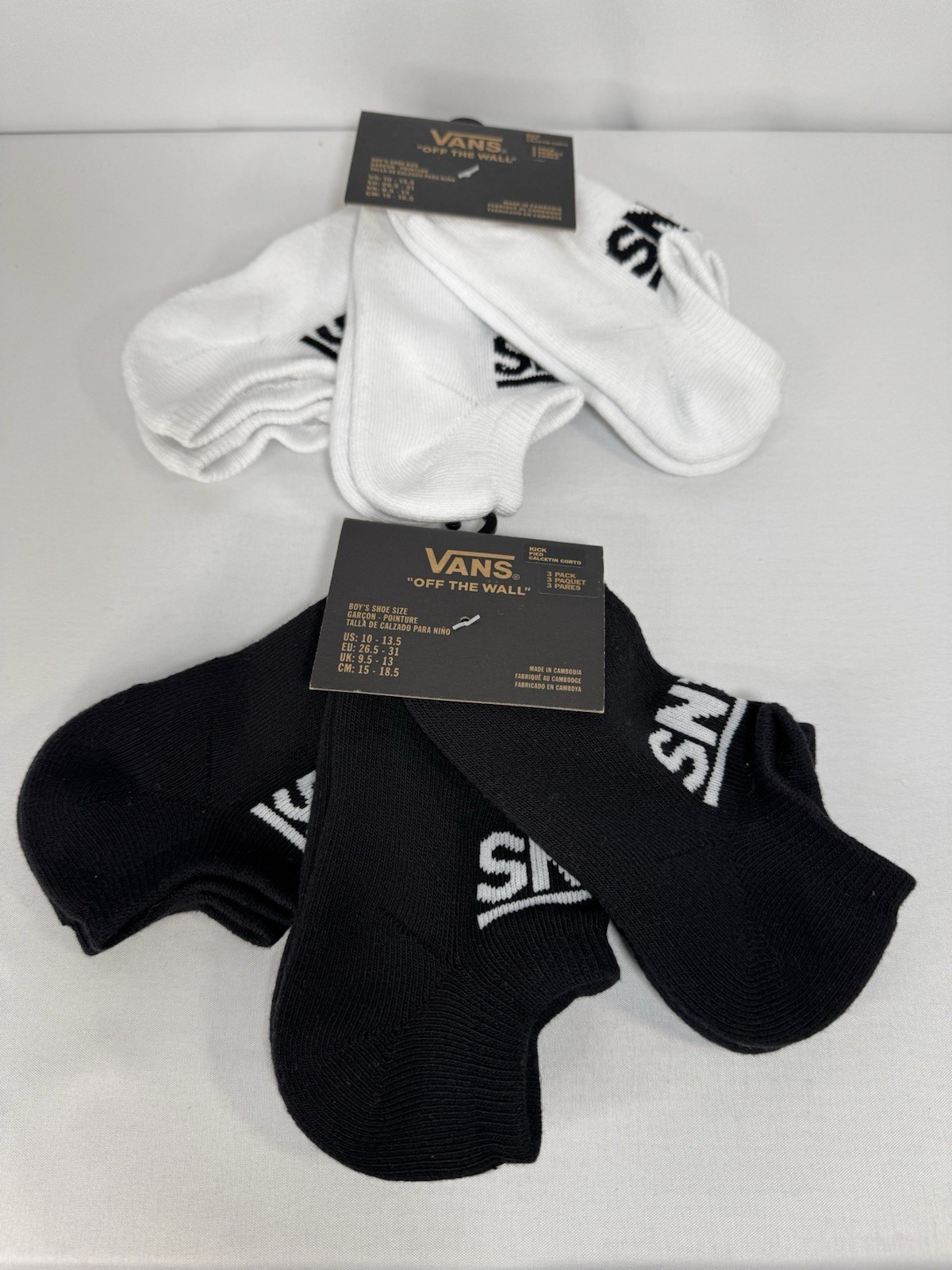 Vans Boys Kick Sock Bundle 6 Pairs 2/3 Packs NWT Black And White Size 10-13.5