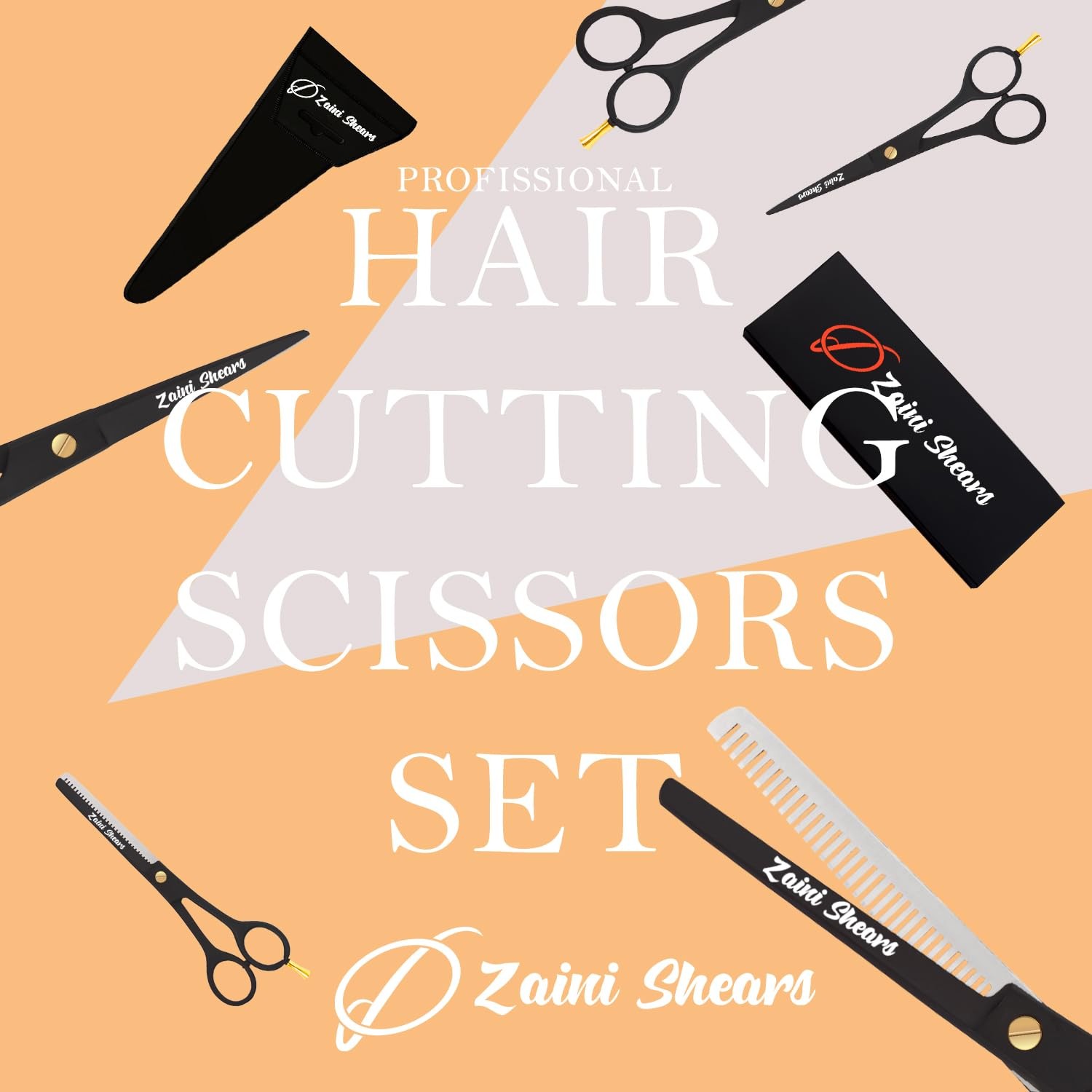 Hair Cutting Scissors Extremely Sharp Right-Hand Razor 6.5'', Black Gold Set