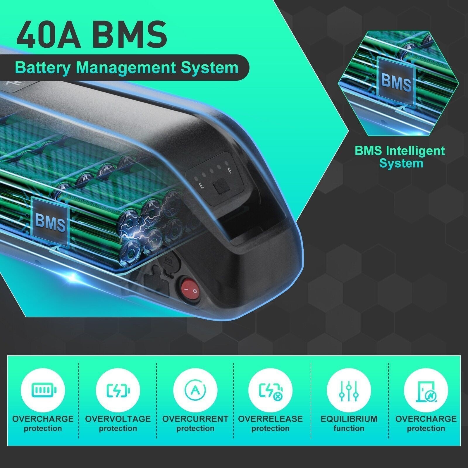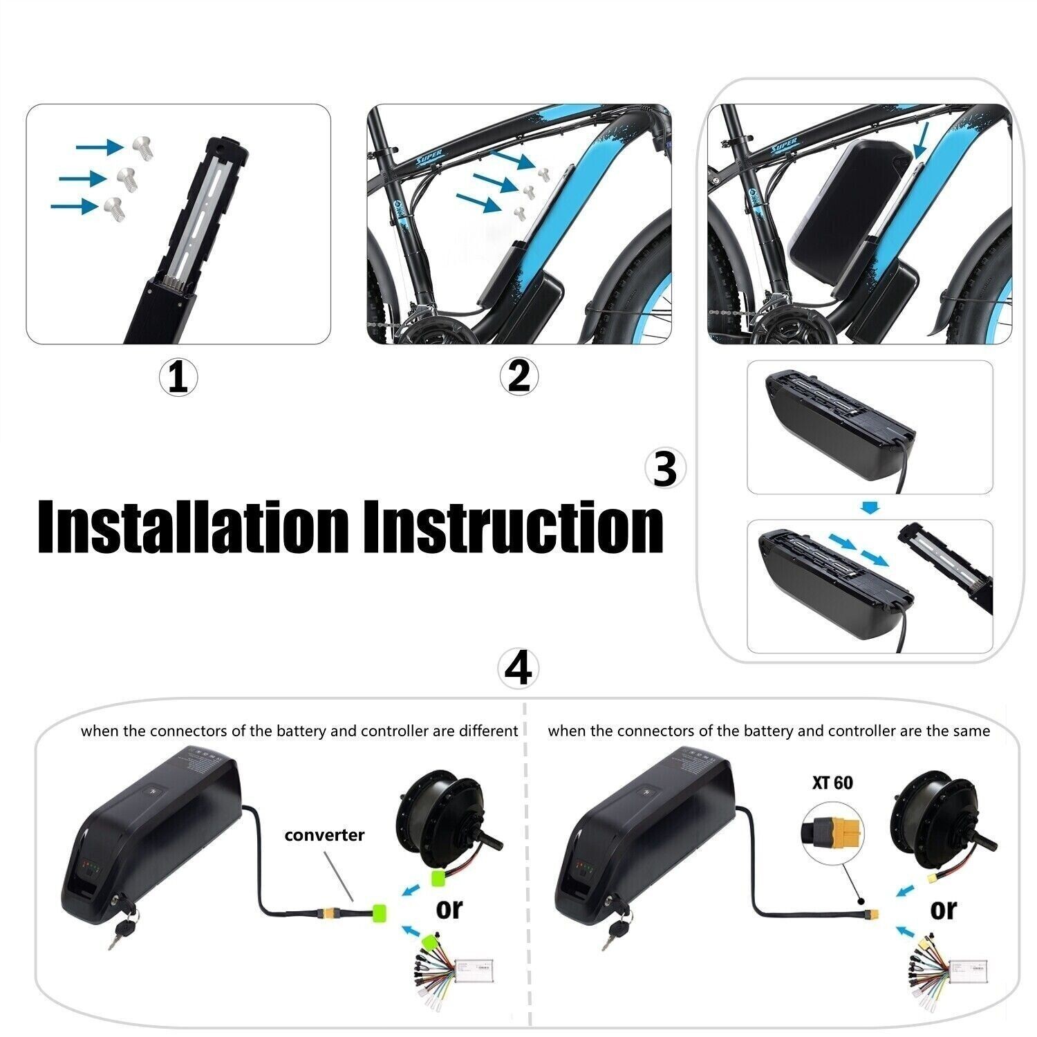 Set Includes: 1 x Battery Charger, 1 x Battery Fix Plate /Frame mount With Discharging Line, 1 x BMS, 1 x Female XT60 Connector, 1 x Hailong Battery, 1 x Male XT60 Connector, 2 x Keys, 4 x Screws(One spare), Bottom Bracket