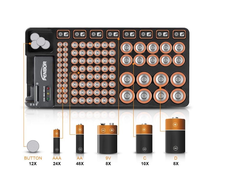Battery Organizer Storage Case w/ Battery Tester - Holds 110 Batteries - New