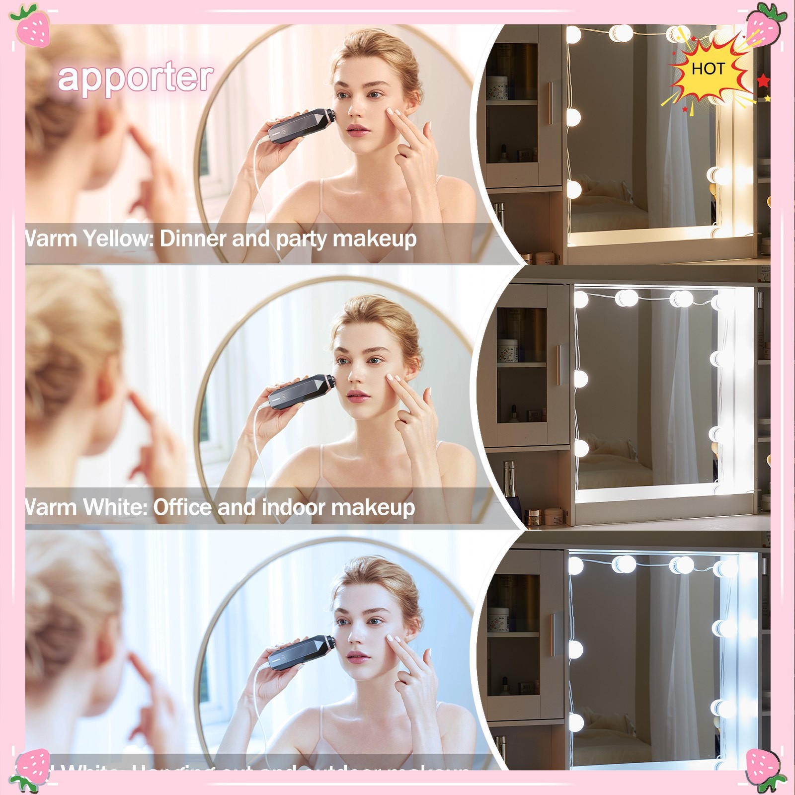 как выглядит 11 LED Bulbs Makeup Vanity Set Dressing Table Lighted Mirror White Dresser Desk фото