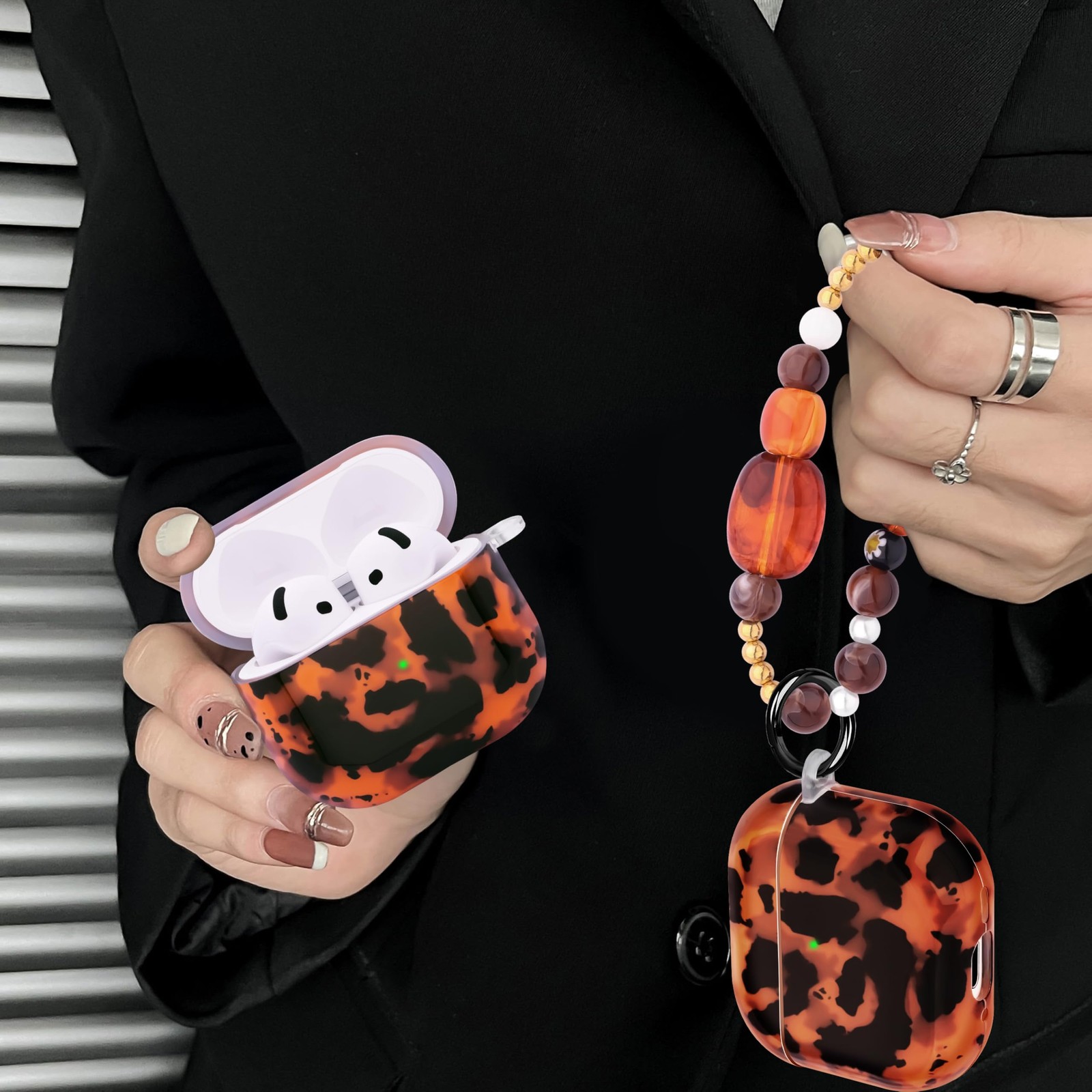 как выглядит Casililor AirPods 4 2024 Hard TPU Case Leopard w/ Keychain Lanyard фото