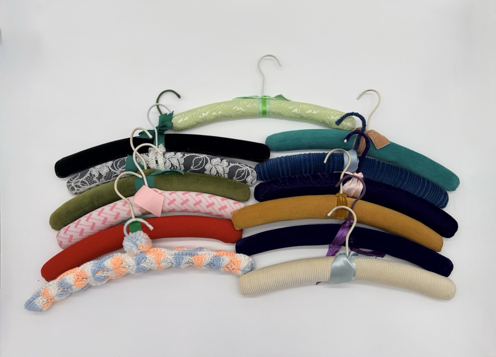 Vintage Lot of 13 Padded Clothes Hangers Fabric Bow Lingerie