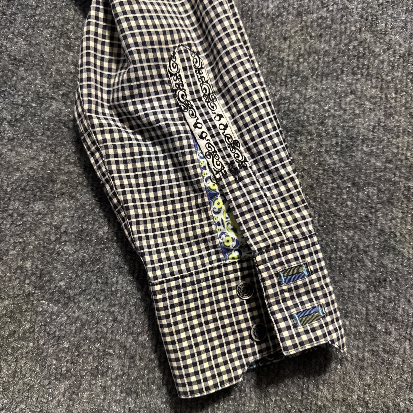 как выглядит Robert Graham Shirt Mens Medium Gray Check Flip Cuff Button Up Classic Fit Top фото