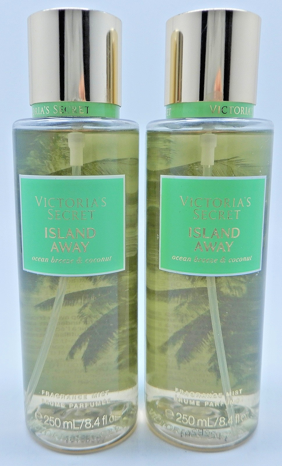 как выглядит 2 VICTORIAS SECRET ISLAND AWAY OCEAN BREEZE COCONUT FRAGRANCE BODY MIST SPRAY фото