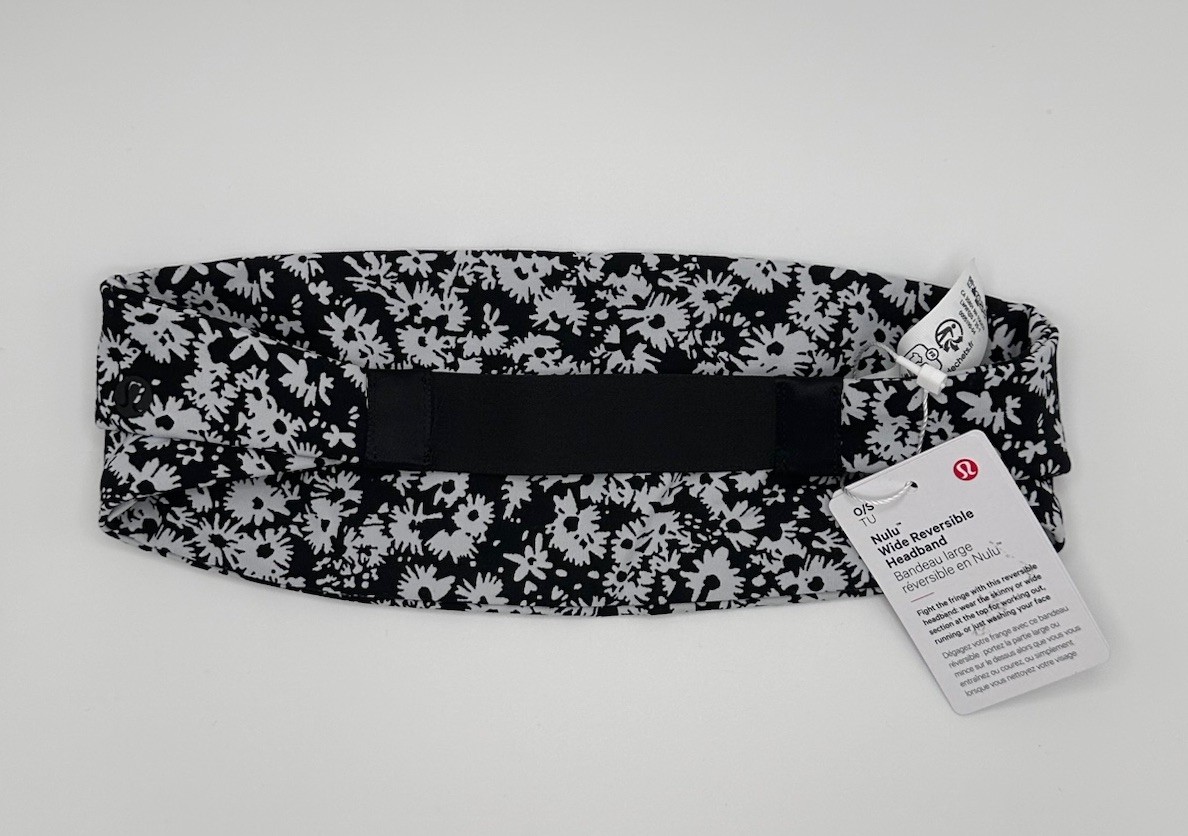 Lululemon Nulu Wide Reversible Headband Black White Floral RARE - 0006