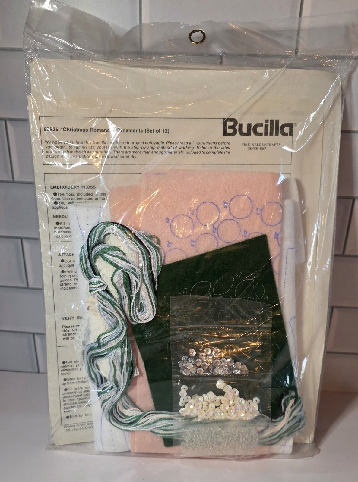 как выглядит 1990 BUCILLA KIT 82835 CHRISTMAS ROMANCE FELT ORNAMENTS SET OF 12 SEALED фото