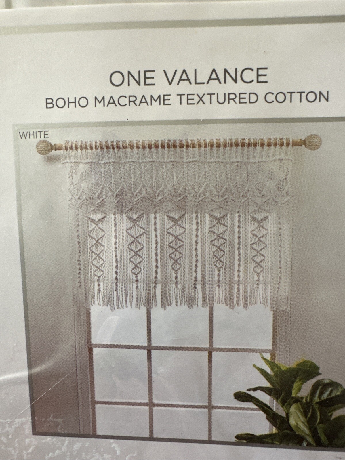 30 x 40 Lush Decor Neutral Macrame Valance Wall Hanging Boho Window Curtain
