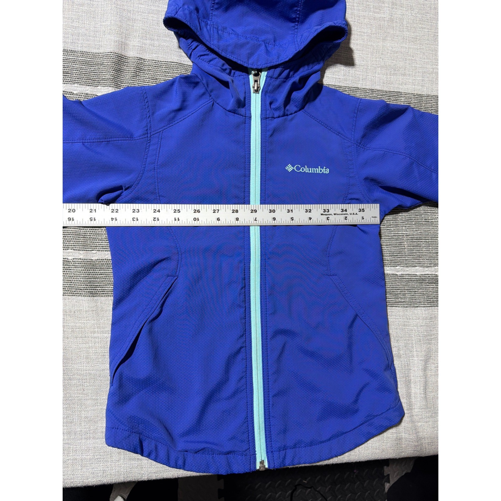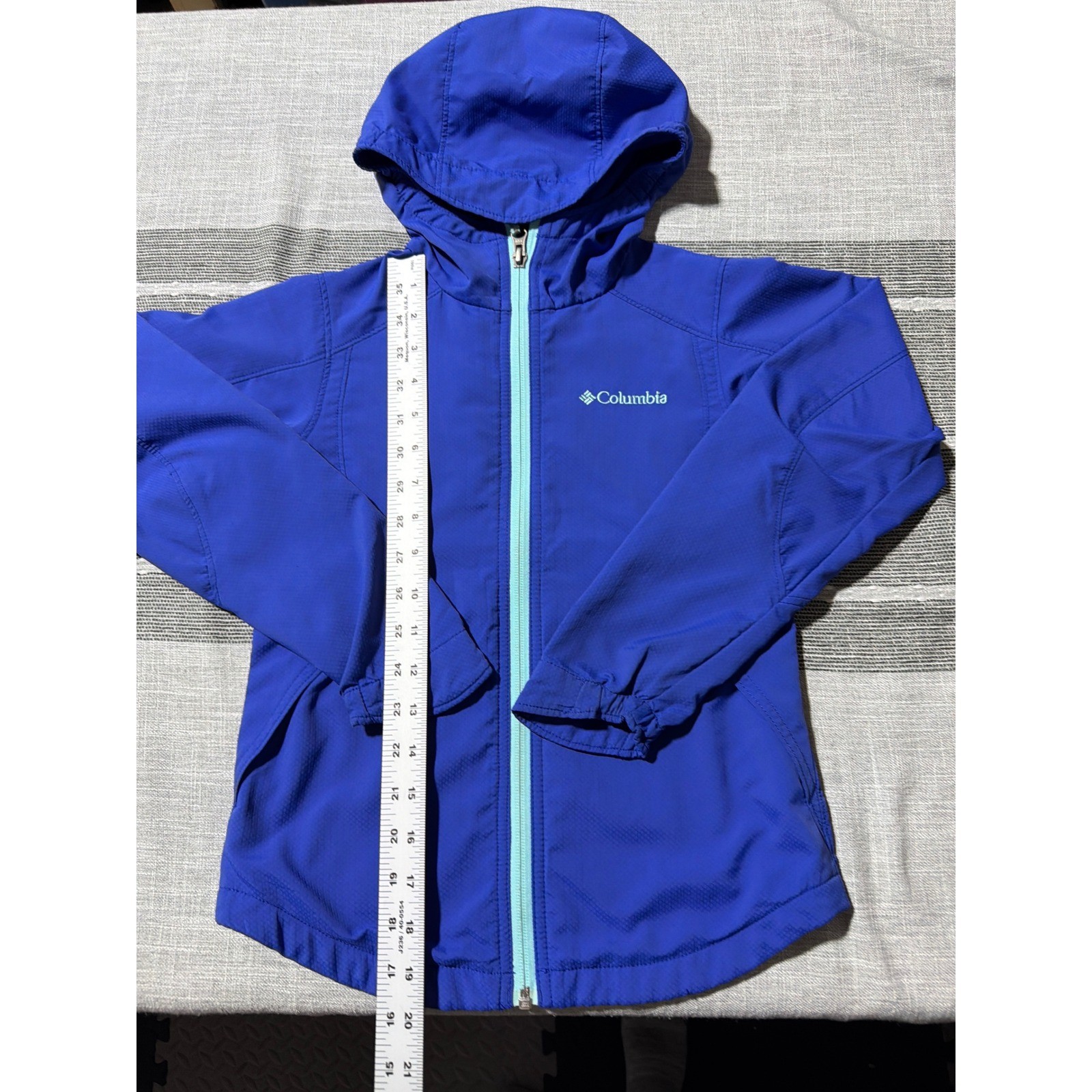 как выглядит Columbia Kids Blue Hooded Lightweight Jacket Full Zip Outdoor Adventure Size M фото